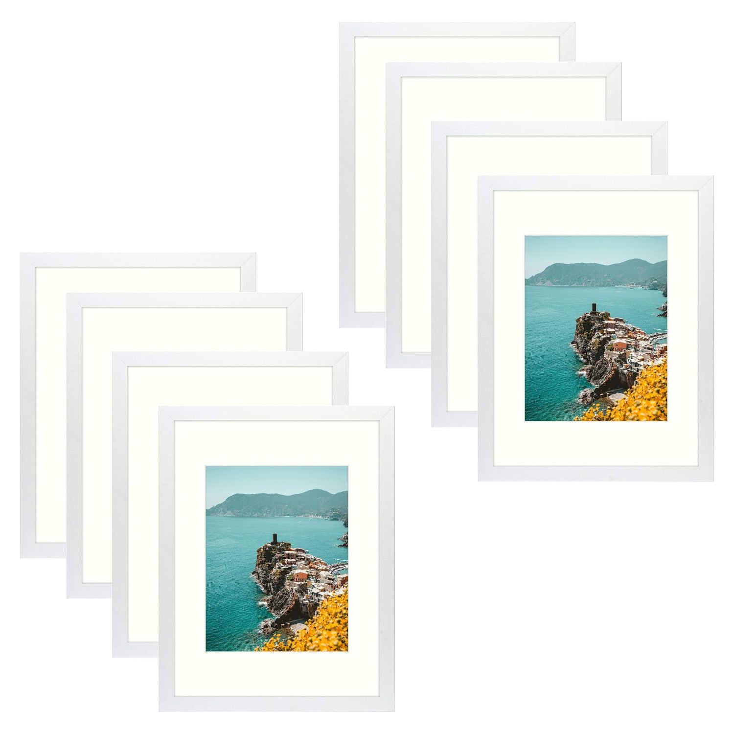 12x16 picture frame in our popular white color. Ivory mat board included for 8.5x11 photo. This is a wholesale pack of 8 for bulk use. High quality and sturdy wood built to last. Perfect for framing your story. Get free shipping within the contiguous United States. For shipping outside of the contiguous US please email us first.