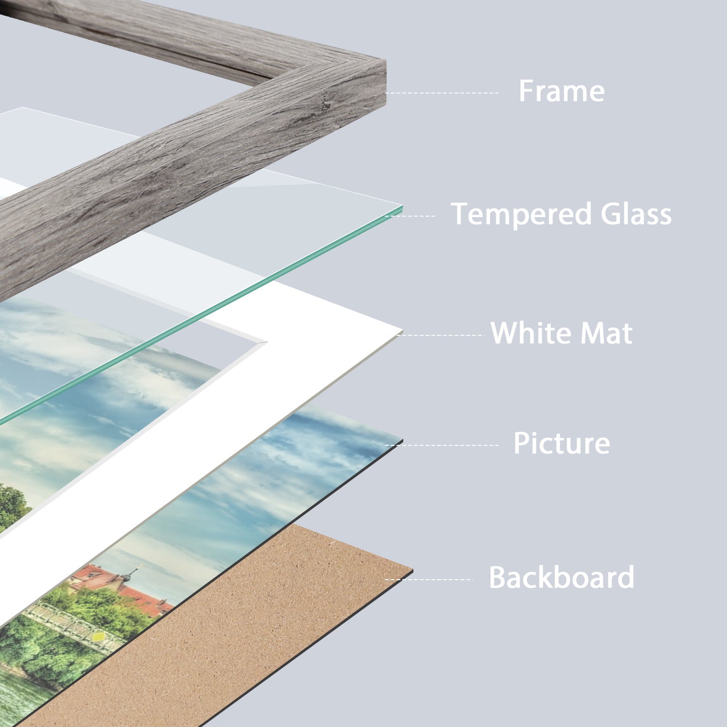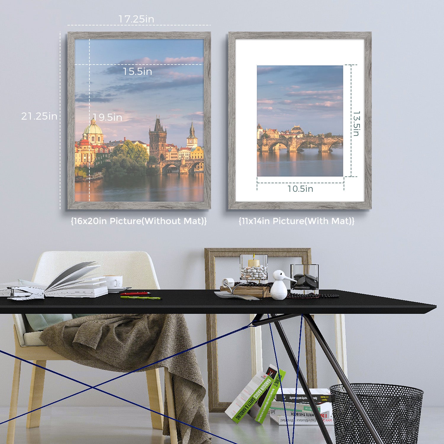 Frametory,16x20 Picture Frame for 11x14 Photo with White Mat and Real Glass (6 Pack)