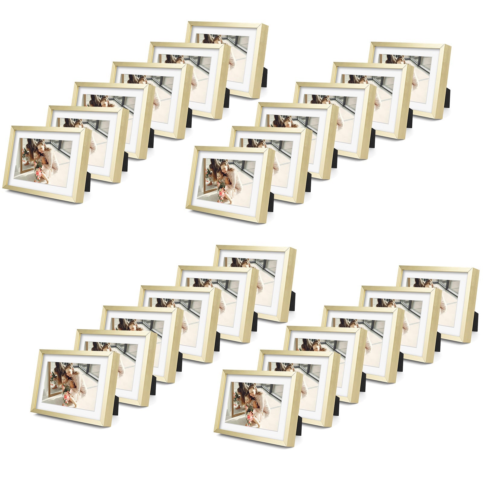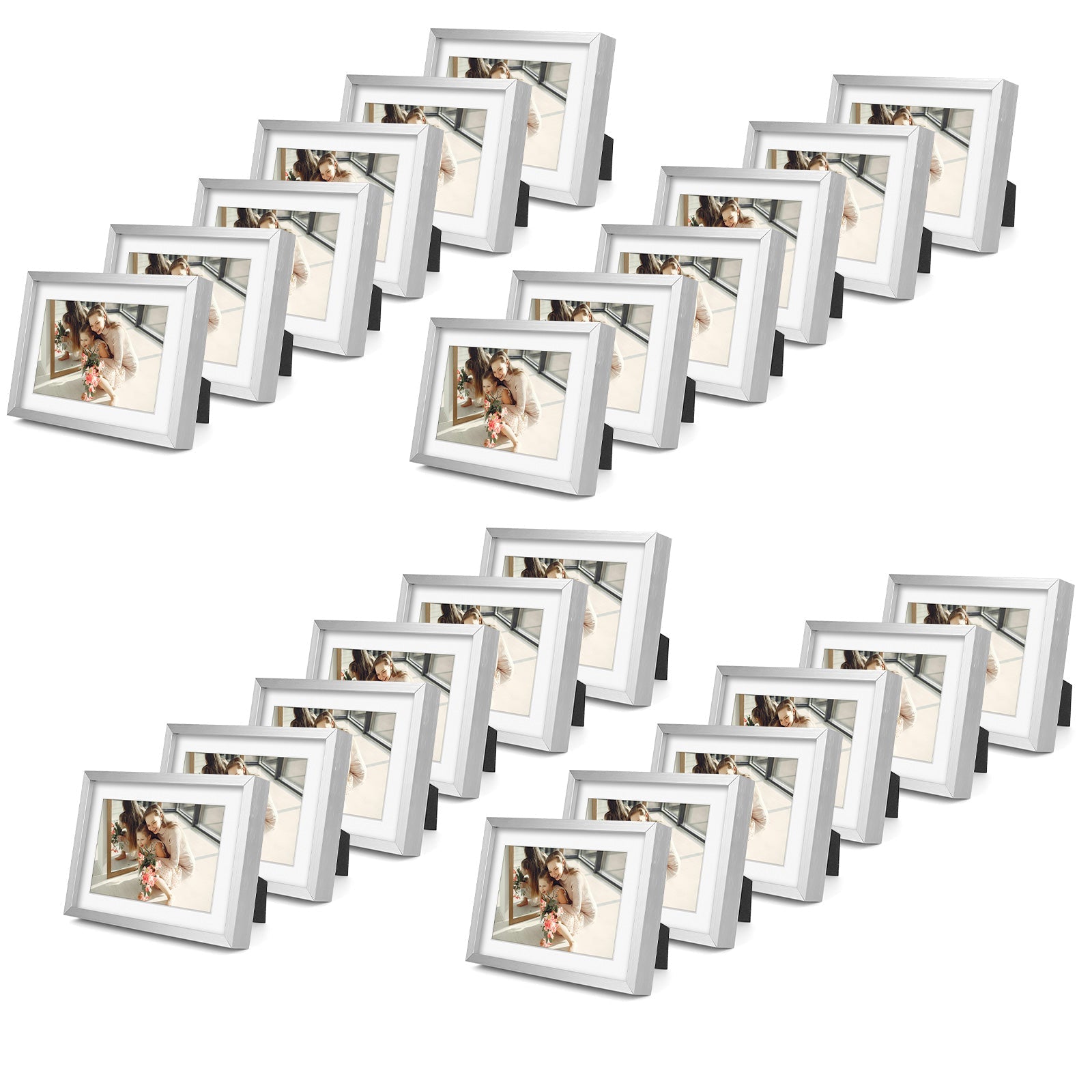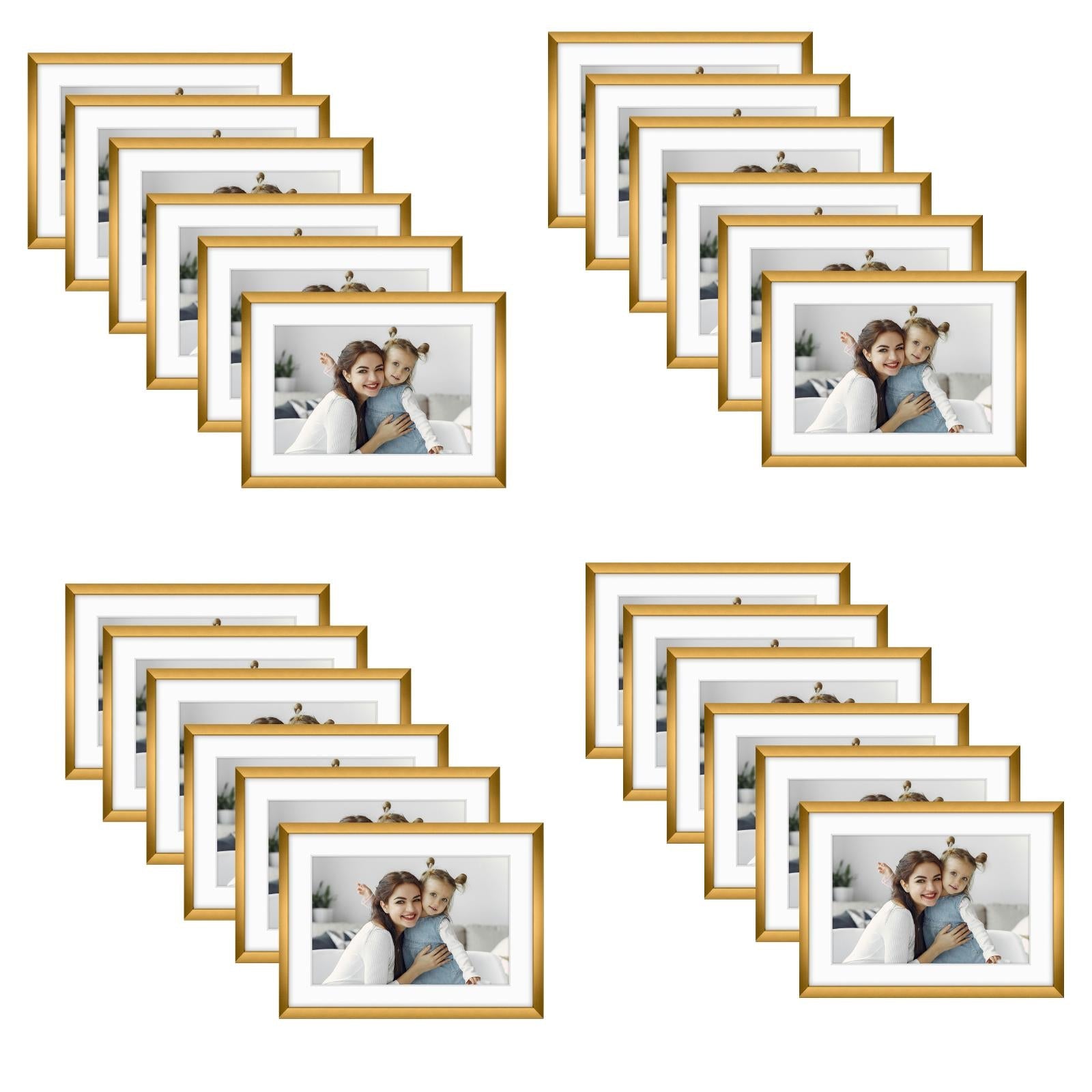 Frametory,5x7 Aluminum Picture Frame for 4x6 Photo with White Mat (24 Pack)