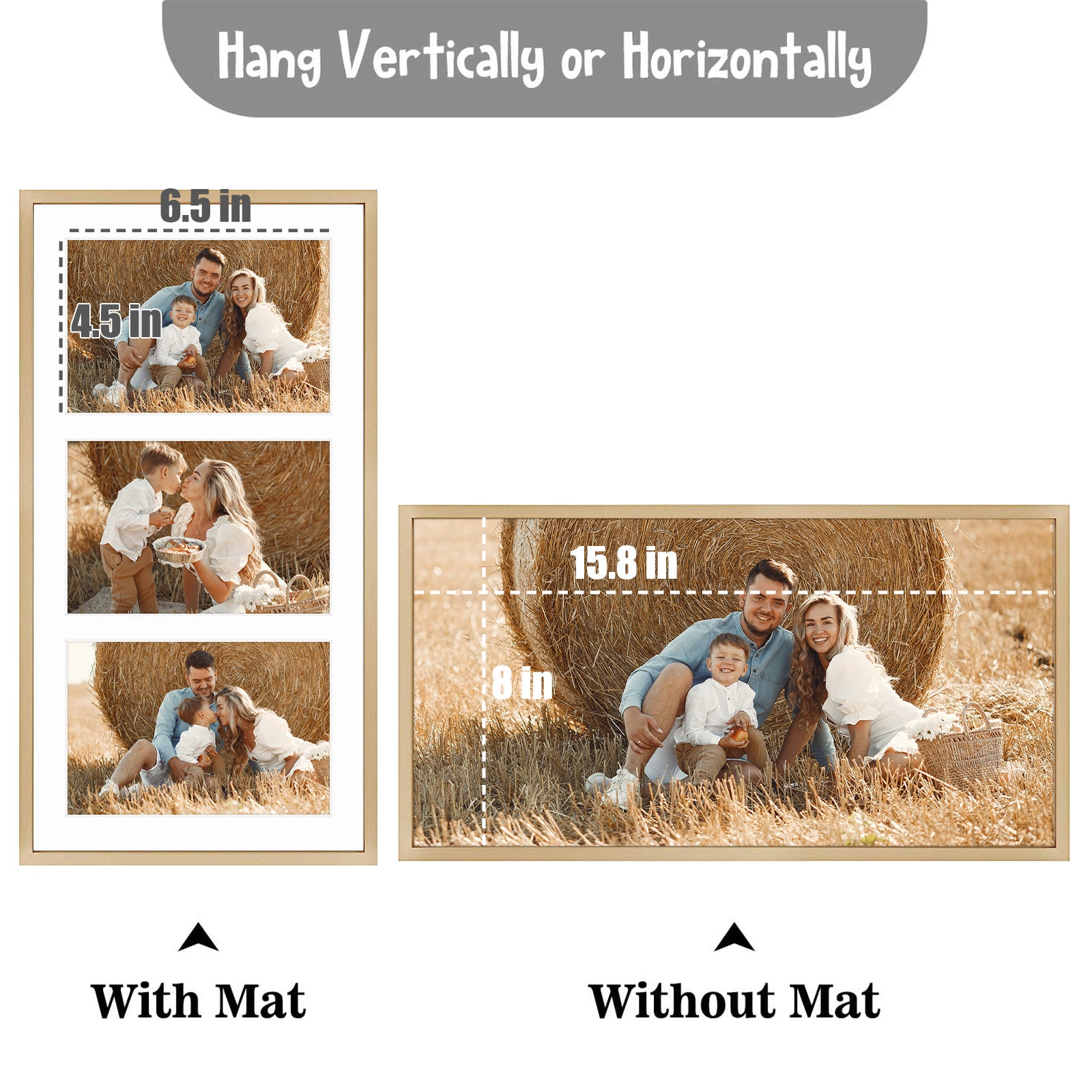 - Versatile Triple Display: Fits three 5x7" photos with mat (visible area: 4.5x6.5") or one panoramic 8.5x16.3" print without mat (visible area: 8x15.8"). Perfect for home or office use.