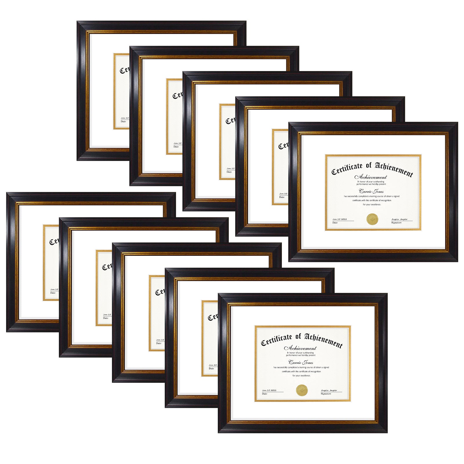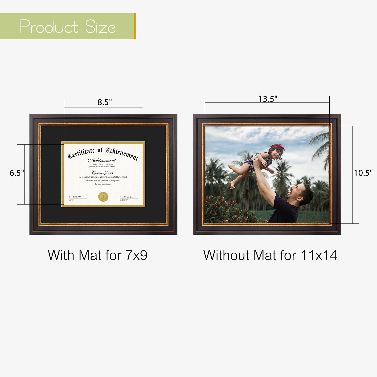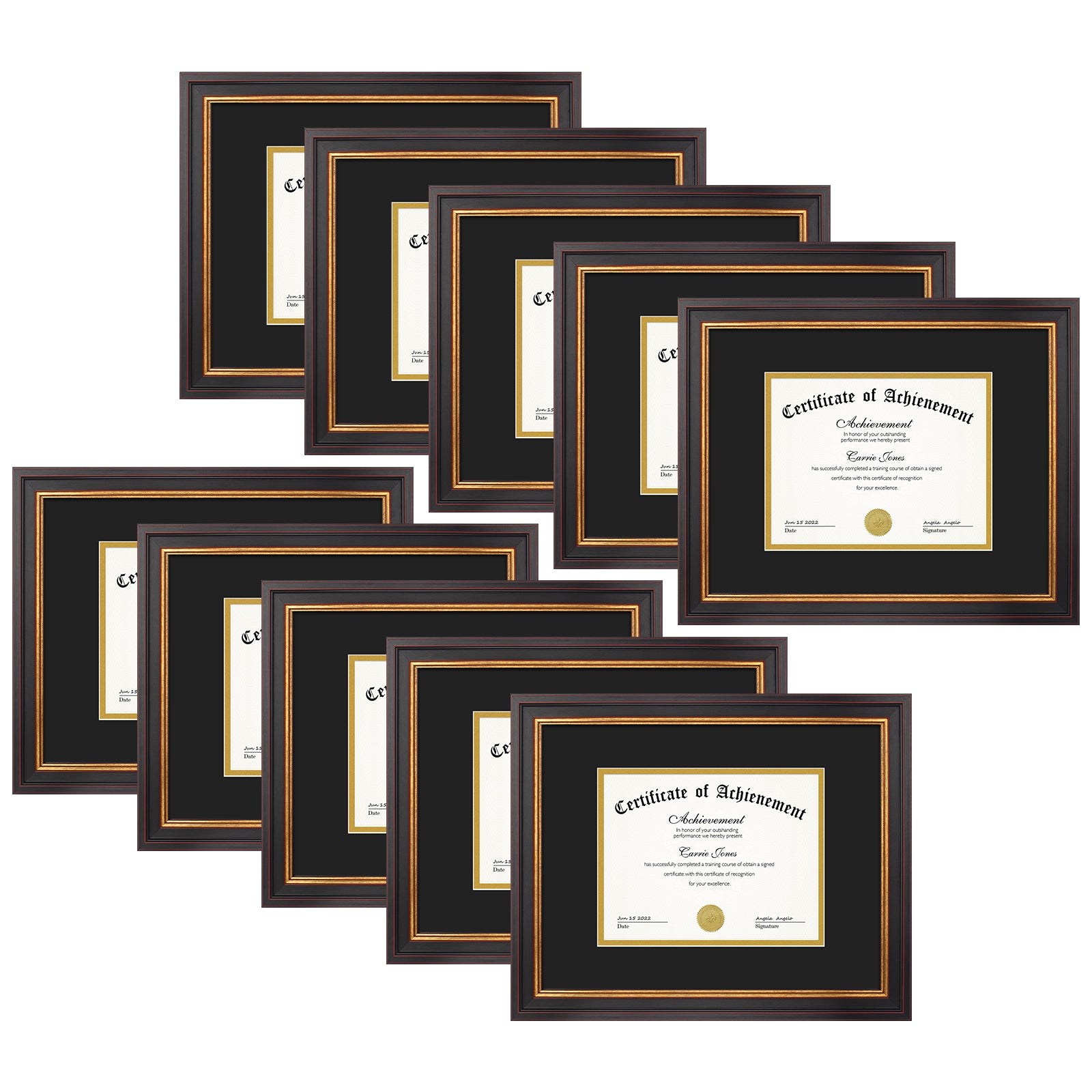 11x14 Diploma Frame with Double Mat for 7x9 Certificate Black Gold & Burgundy Color (10 Pack)