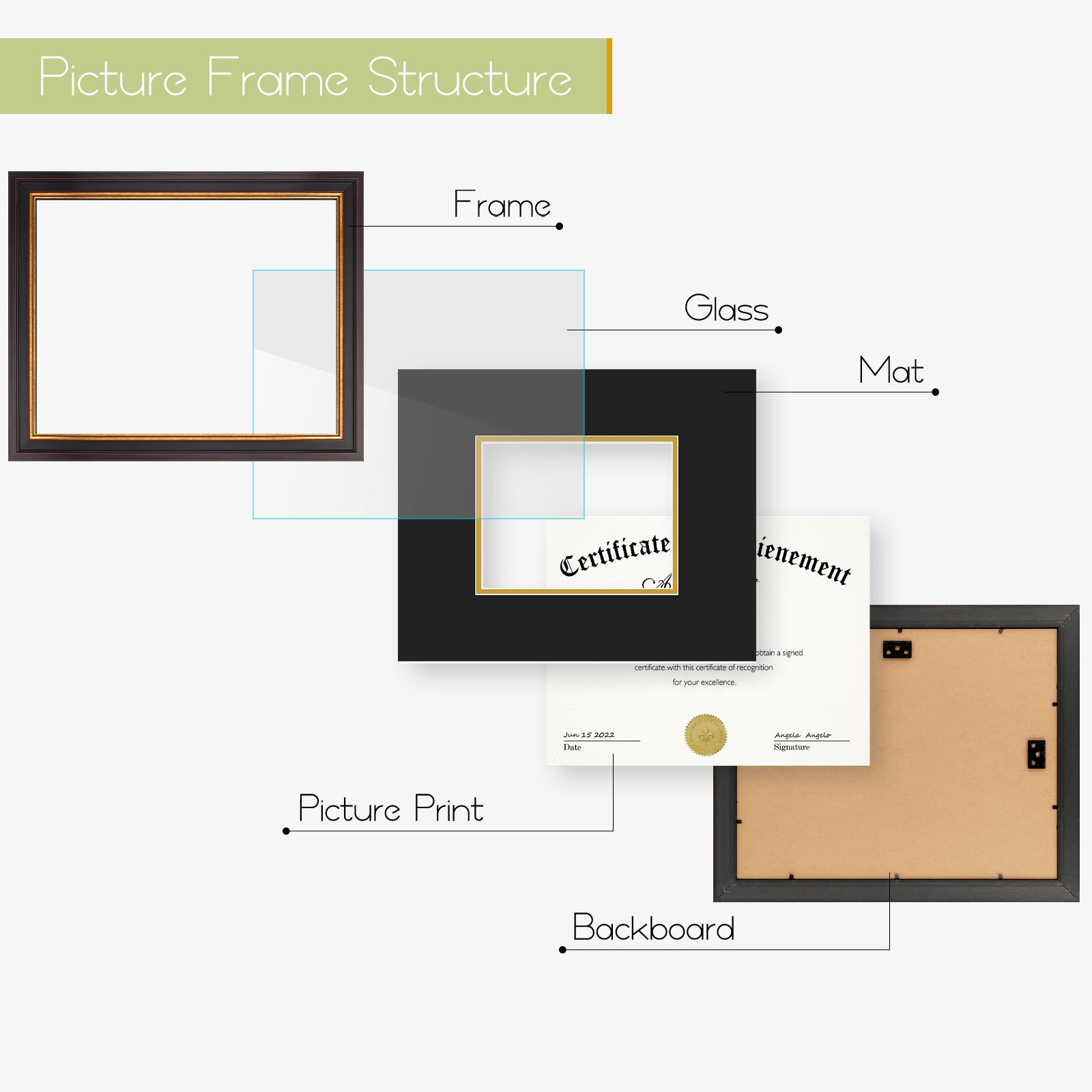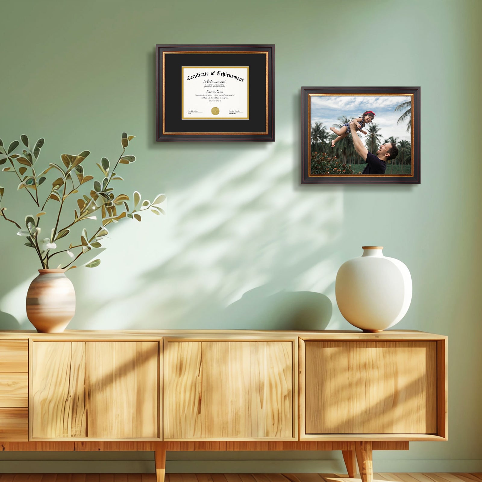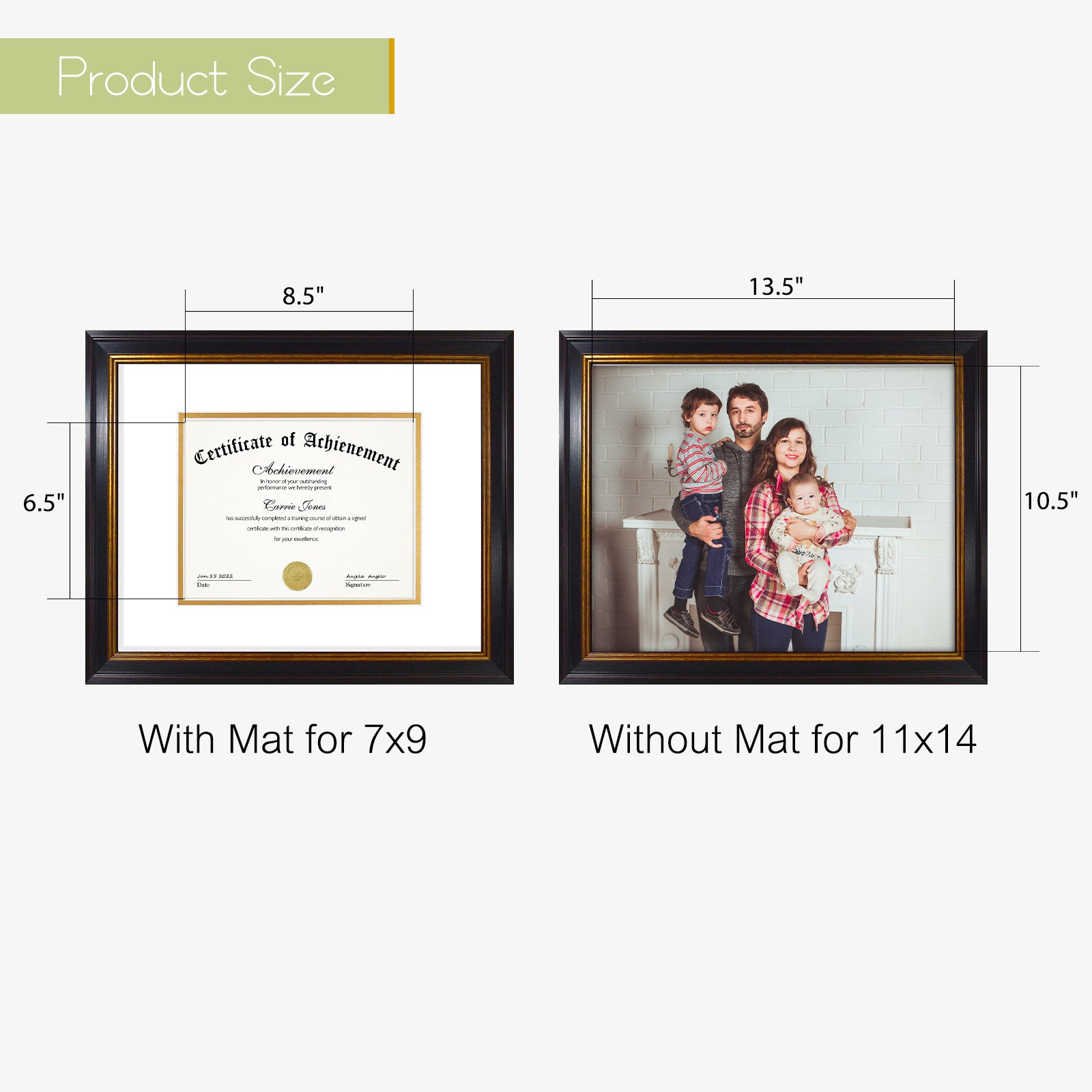 11x14 Diploma Frame with Double Mat for 7x9 Certificate Black Gold & Burgundy Color (10 Pack)