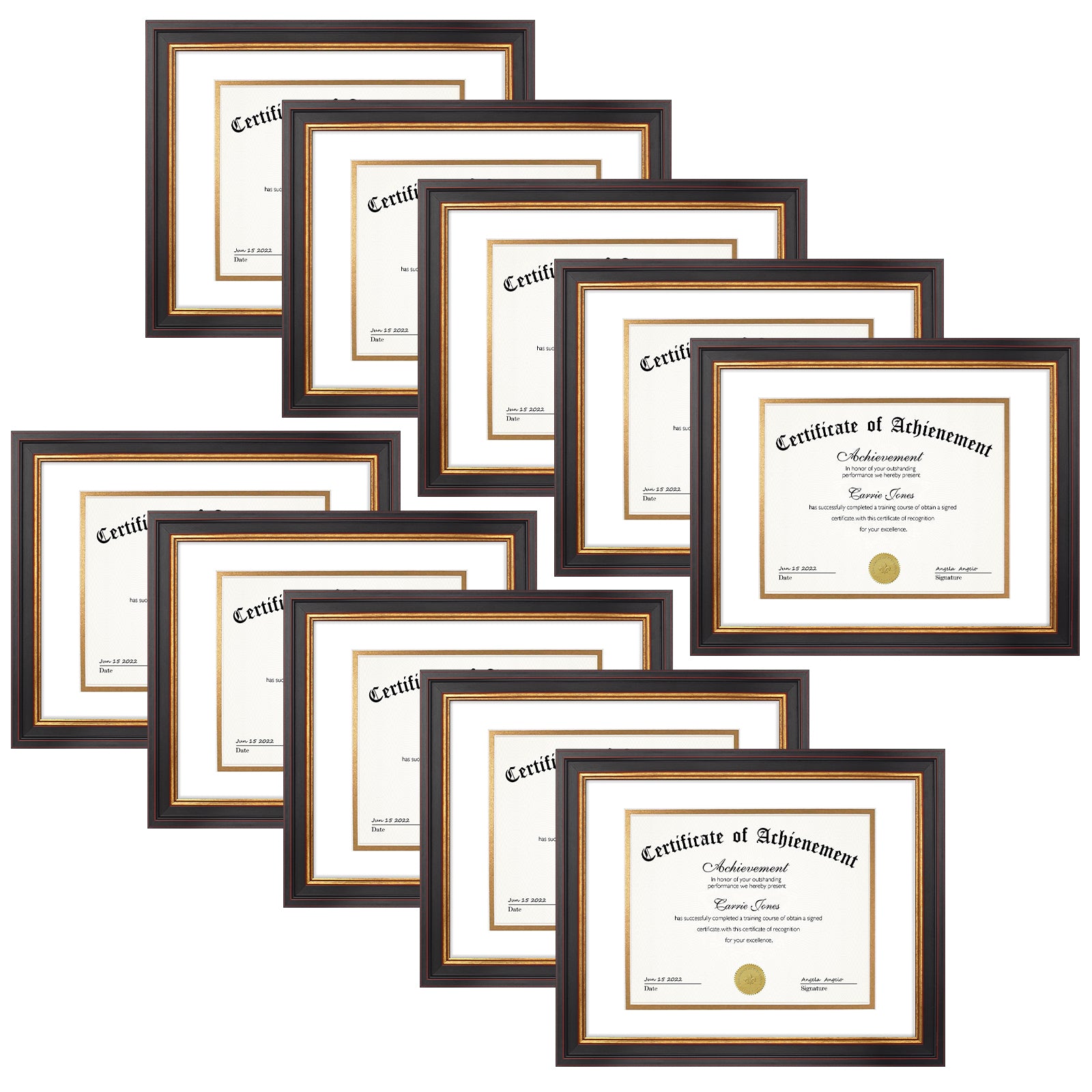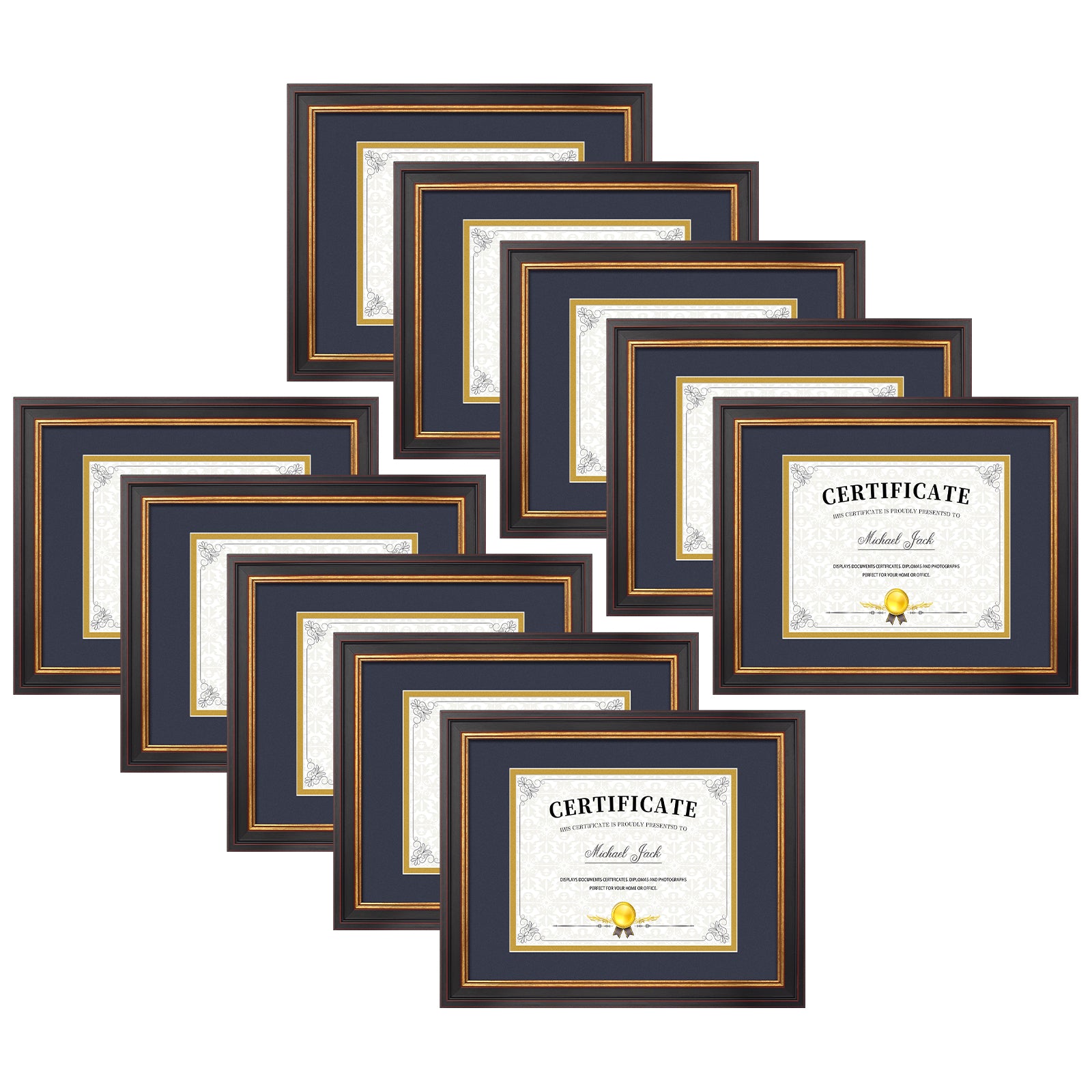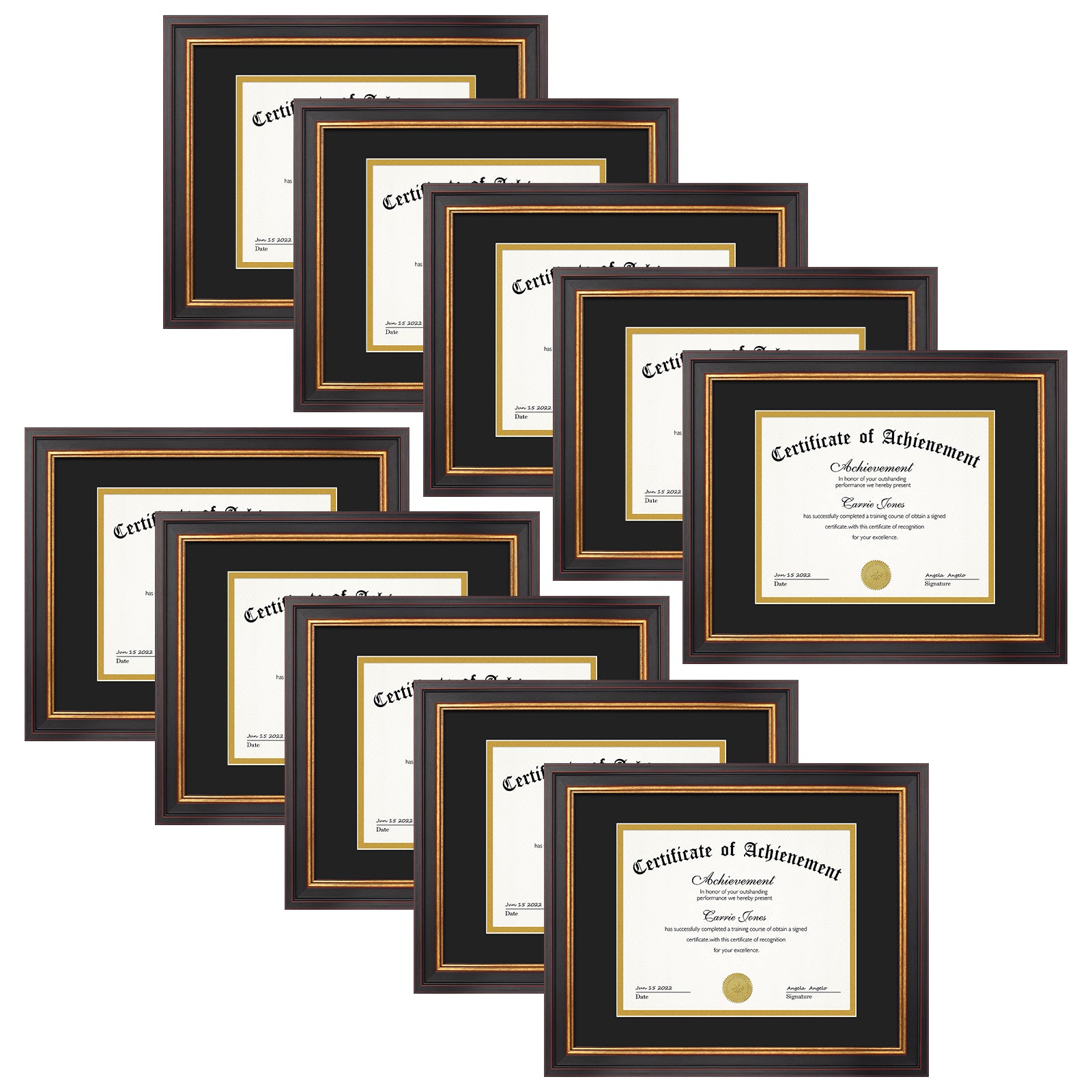 11x14 Diploma Frame with Double Mat for 8x10 Certificate Black Gold & Burgundy Color (10 Pack)
