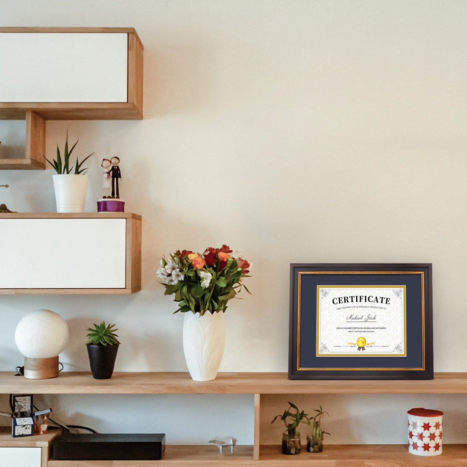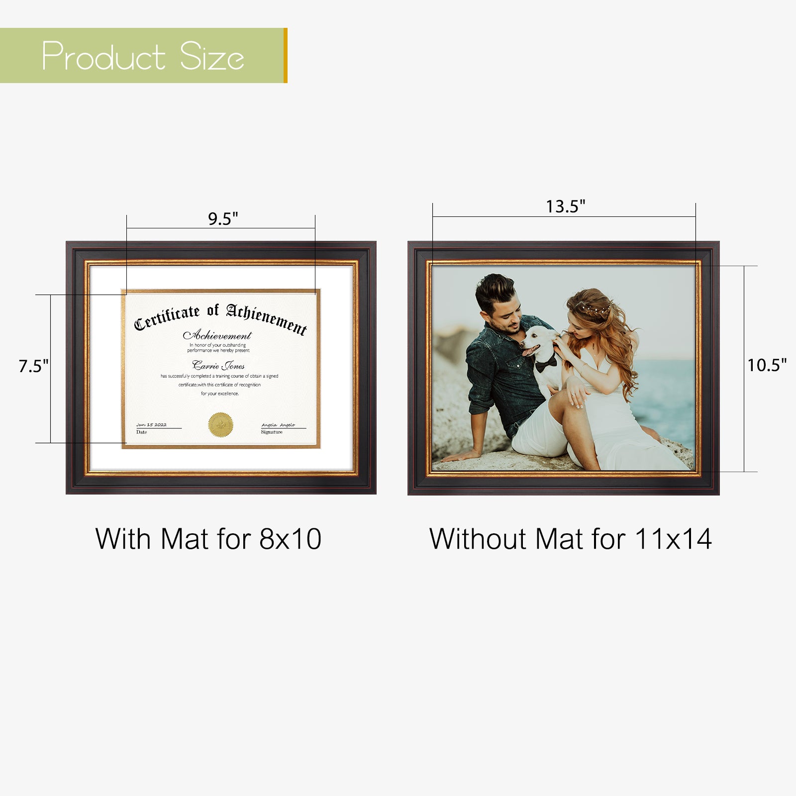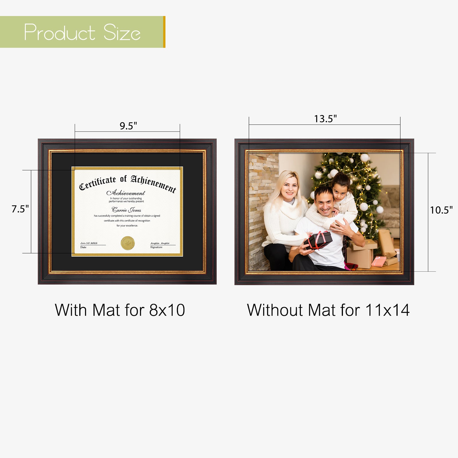 11x14 Diploma Frame with Double Mat for 8x10 Certificate Black Gold & Burgundy Color (10 Pack)