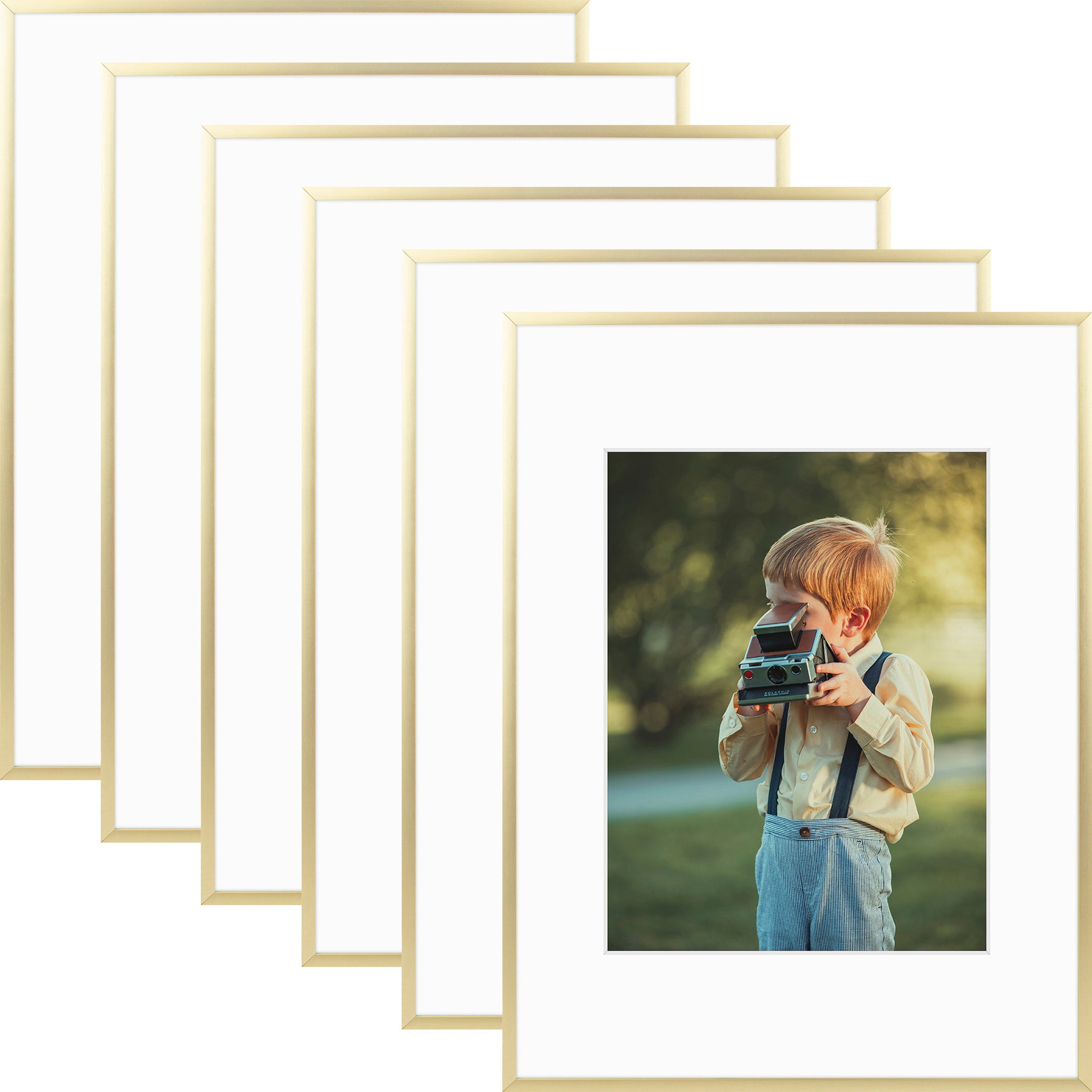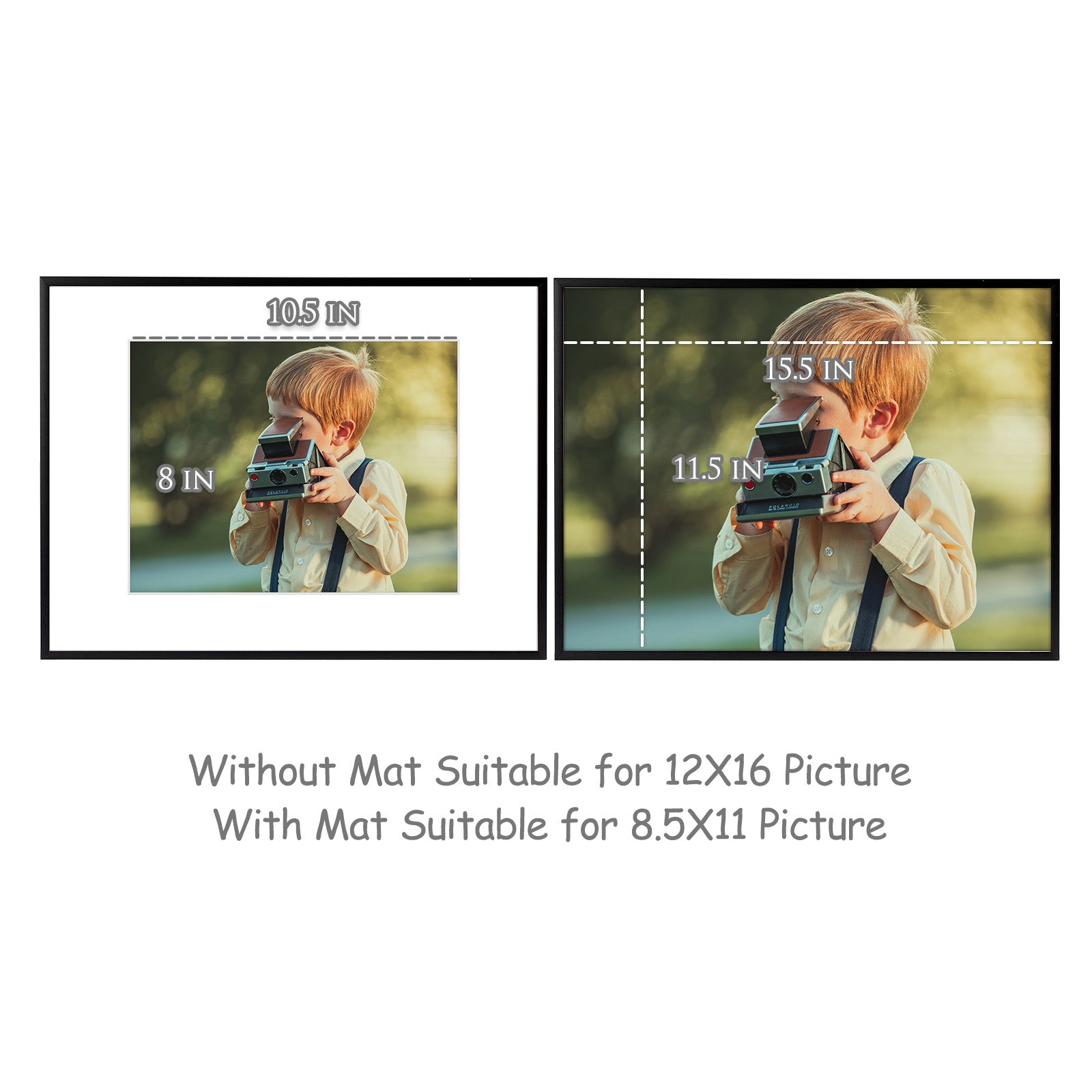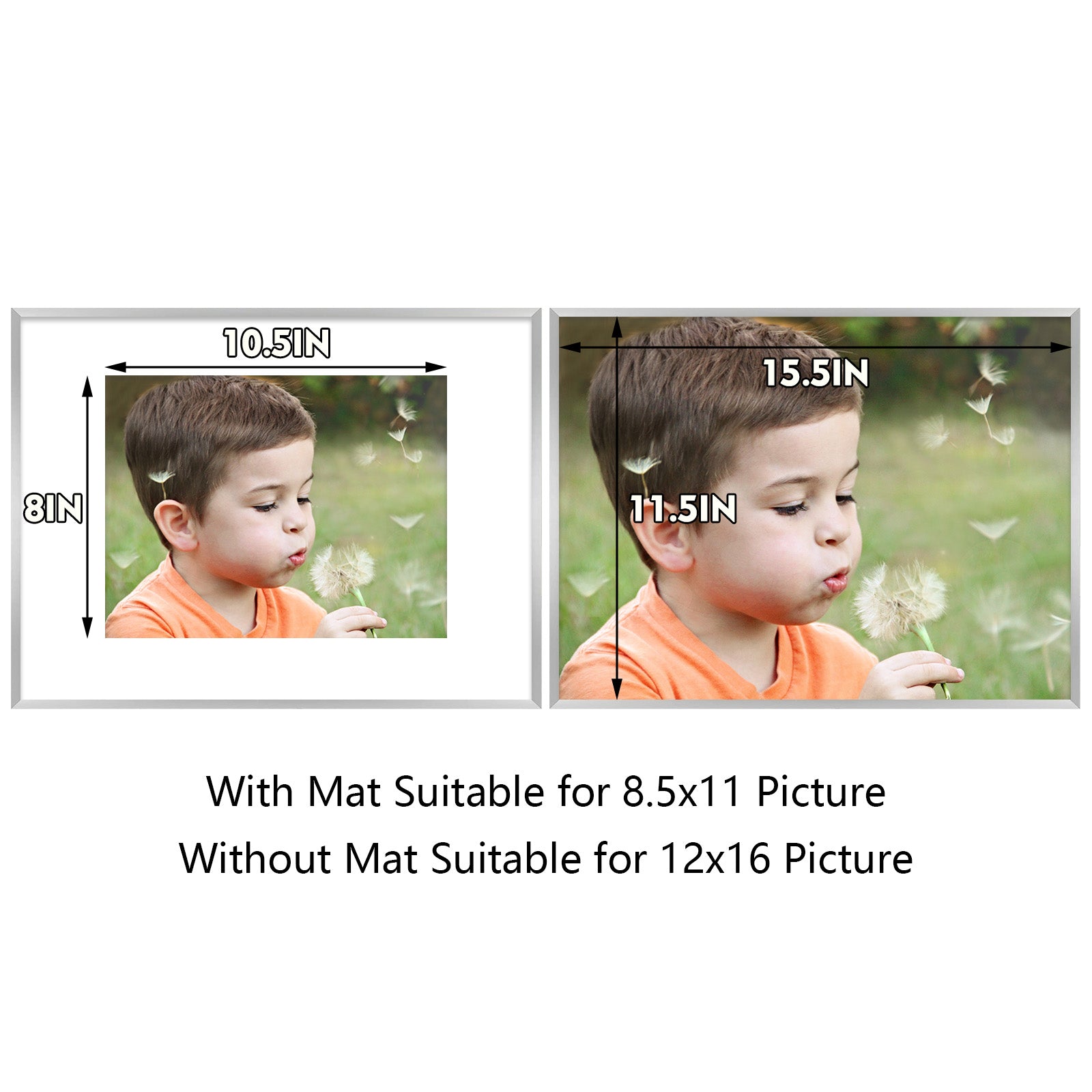 12x16 aluminum picture frame in our popular colors. White mat board included for 8.5x11 photo. High quality and sturdy metal built to last. Perfect for framing your story. Get free shipping within the contiguous United States.