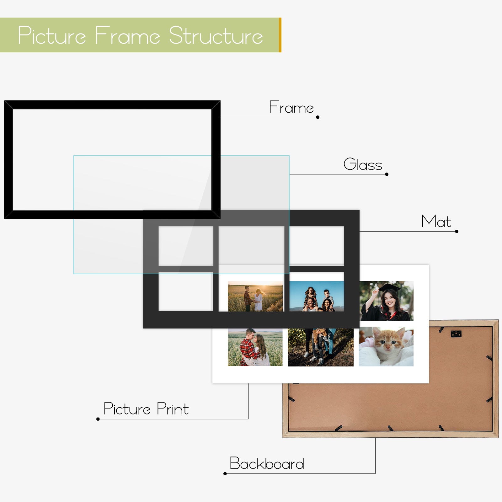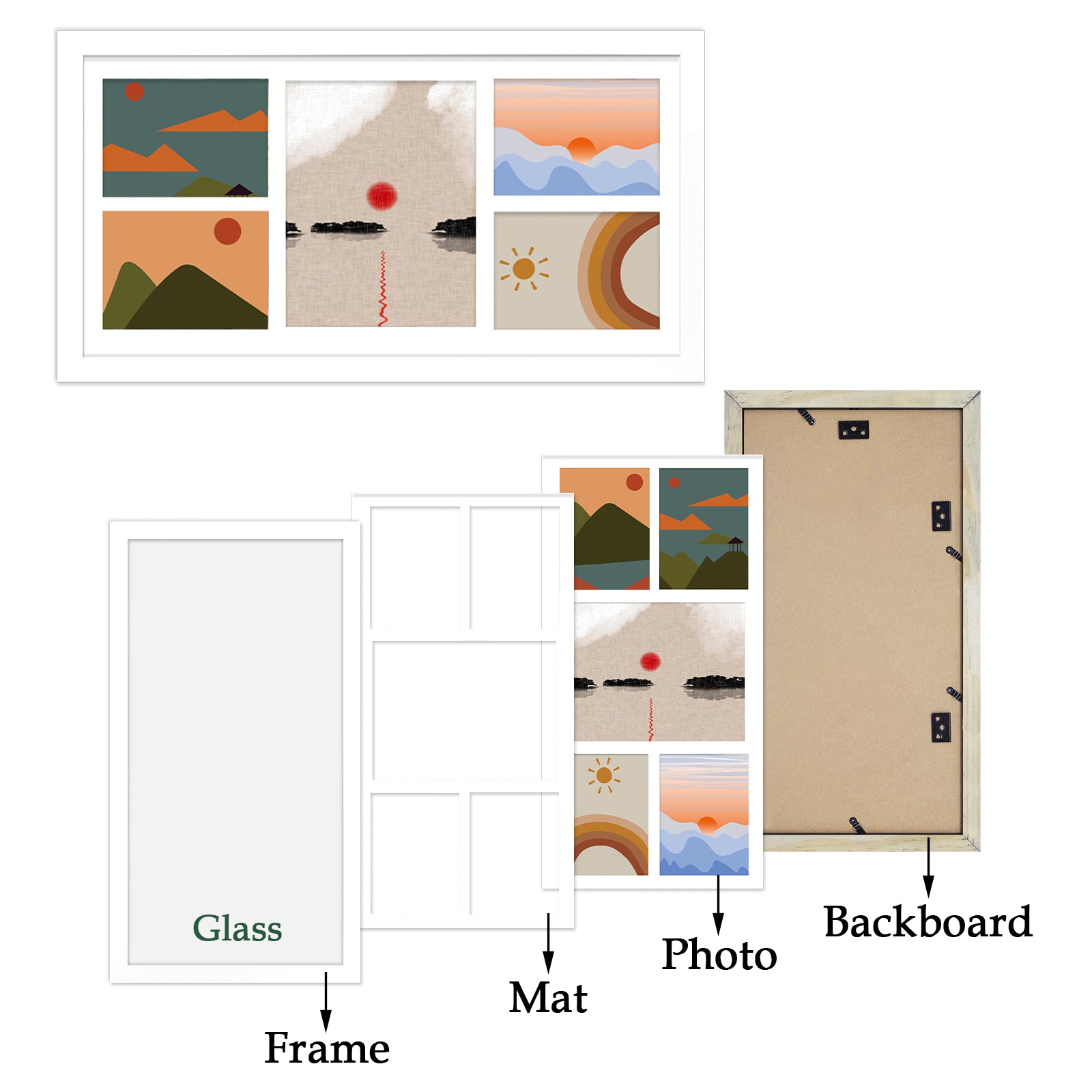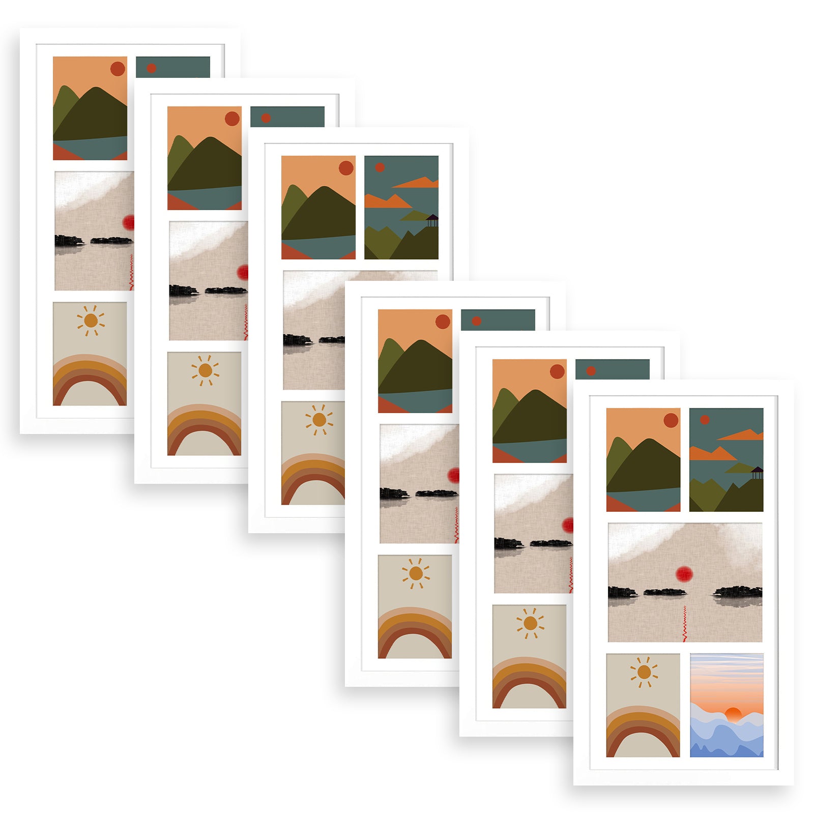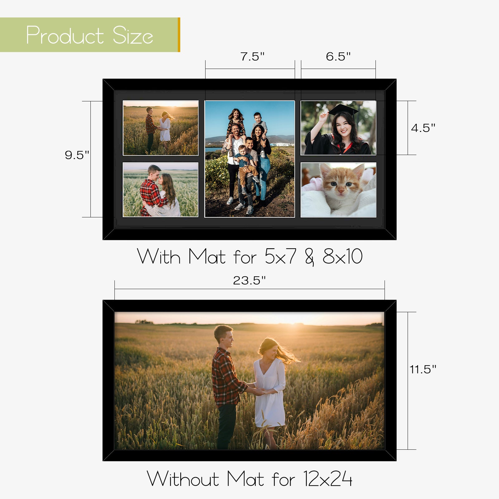 12x24 Collage Picture Frames with Mat For One 8x10 and Four 5x7 Pictures (6 Pack)