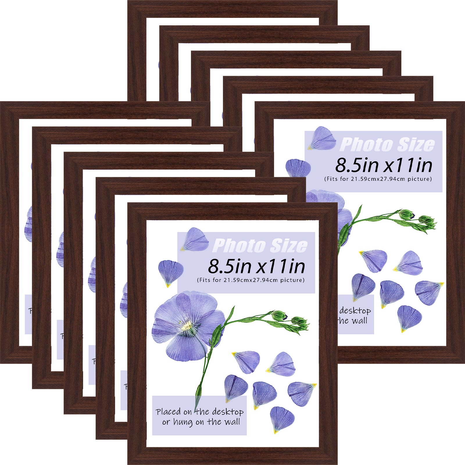 8.5x11 picture frame in our popular colors. No mat board included. This is a wholesale pack in a set of 10 or 16 for bulk use. High quality and sturdy MDF built to last. Perfect for framing your story. Get free shipping within the contiguous United States.