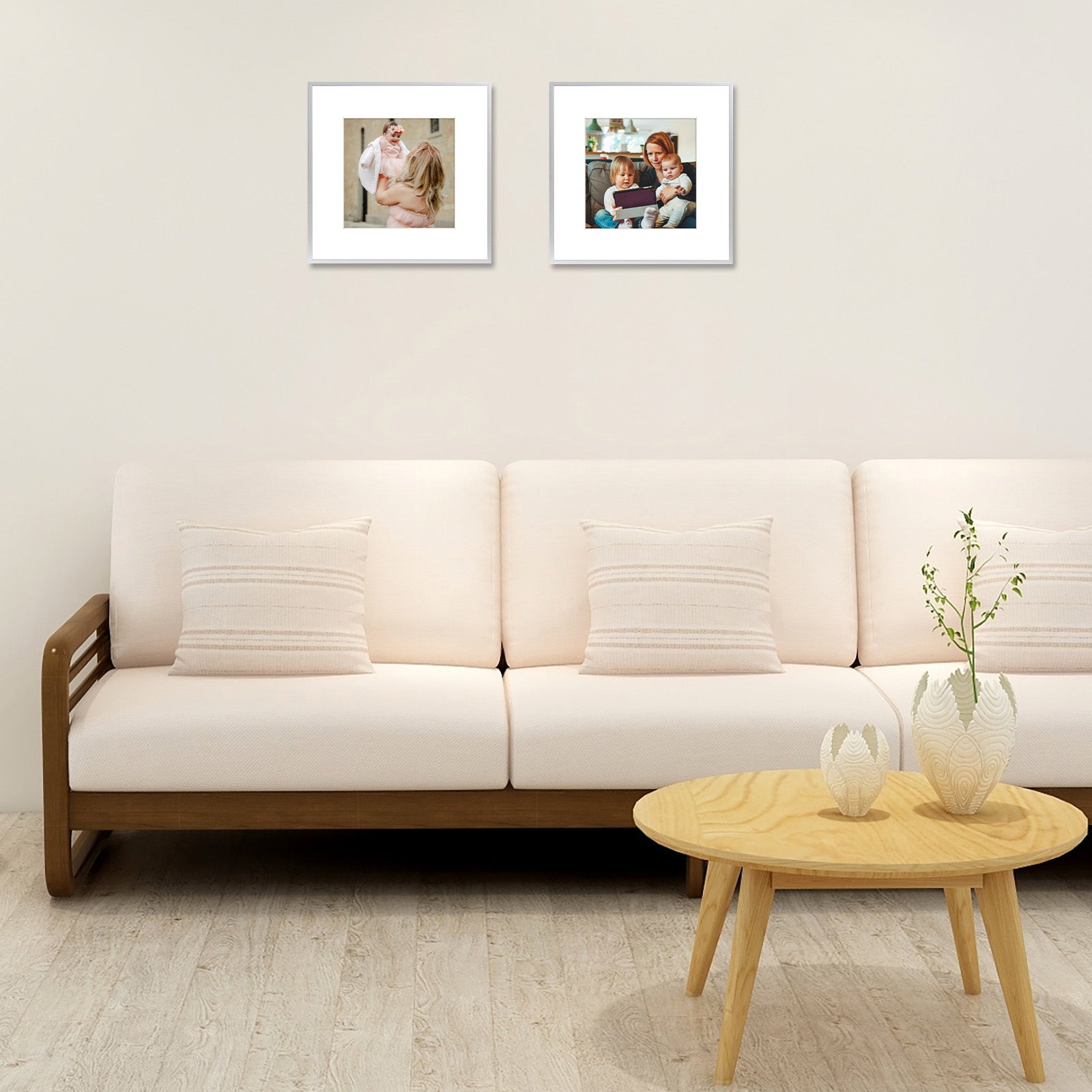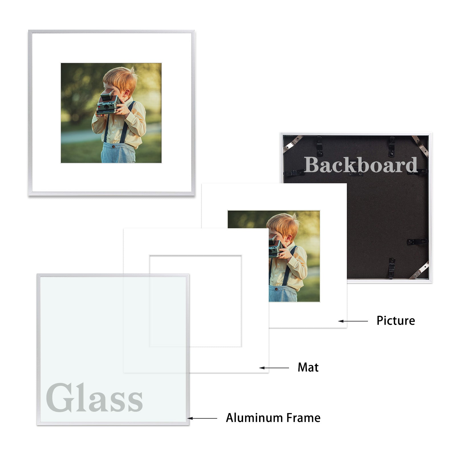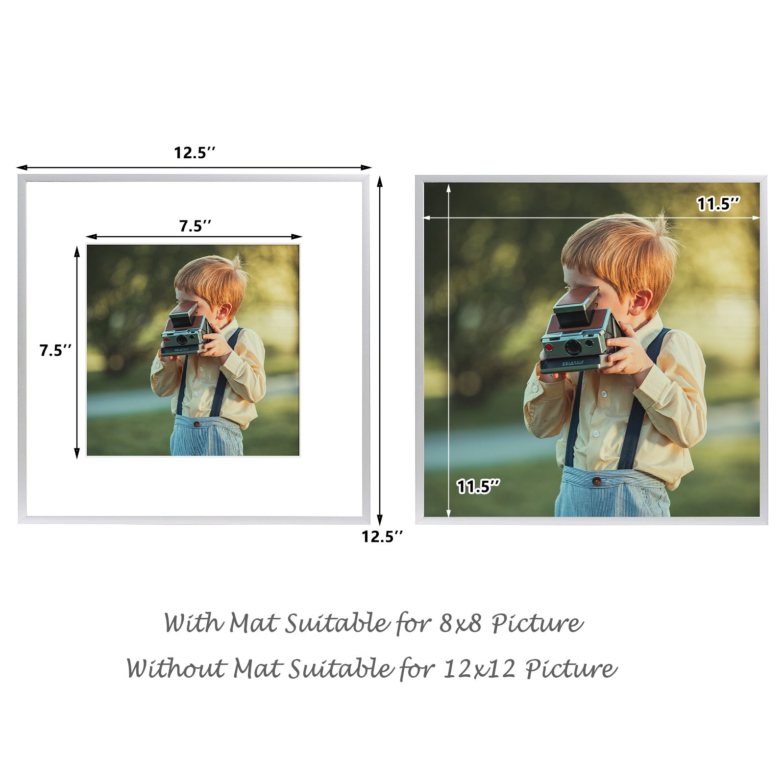 Upgrade your display with this 12x12 metal picture frame, designed to hold an 8x8 picture with the included white mat board. Made from high-quality metal moulding, this frame is built to last and adds a sleek, modern touch to any space.
