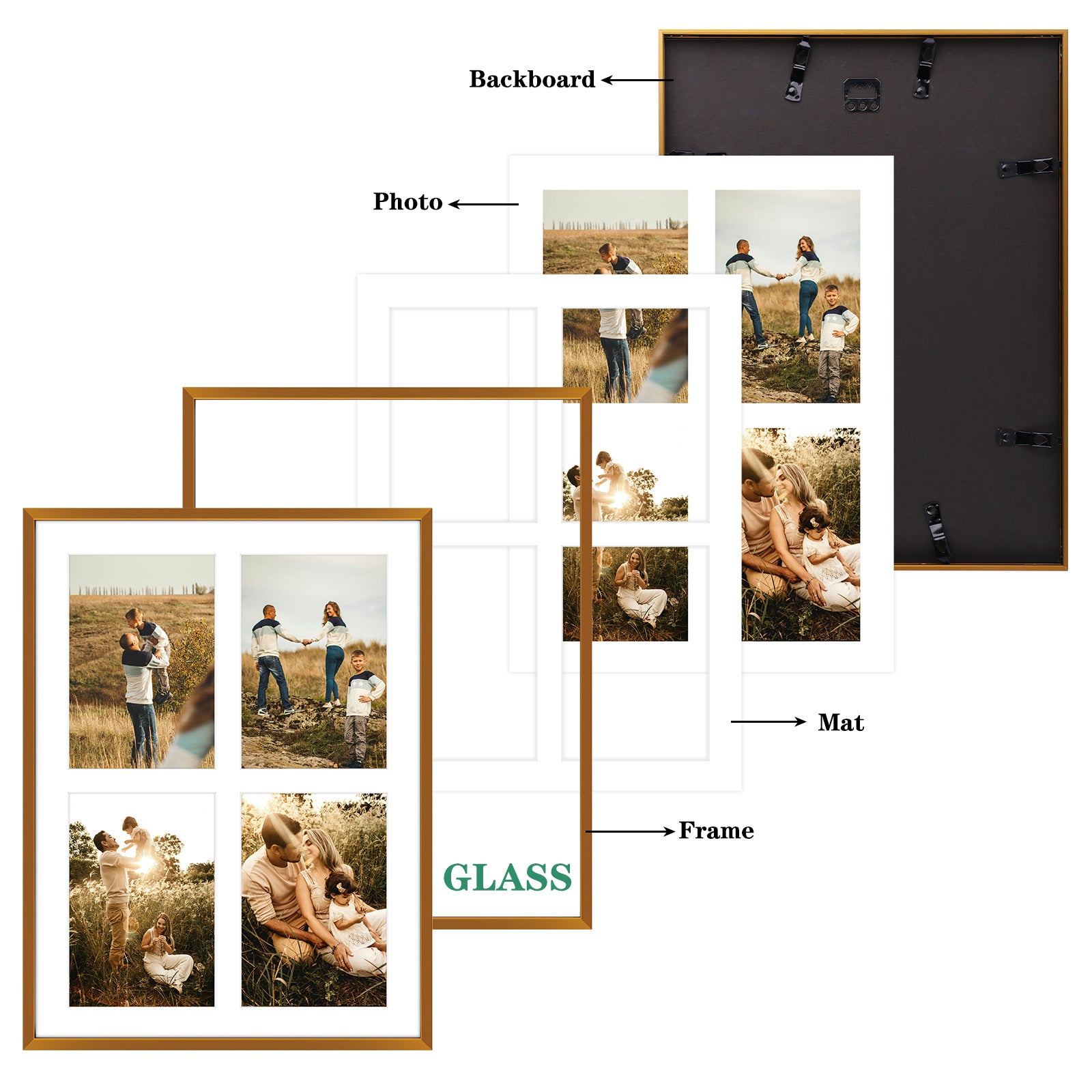 12x16 Aluminum Collage Photo Frame for Four 5x7 Photos (6 Pack)