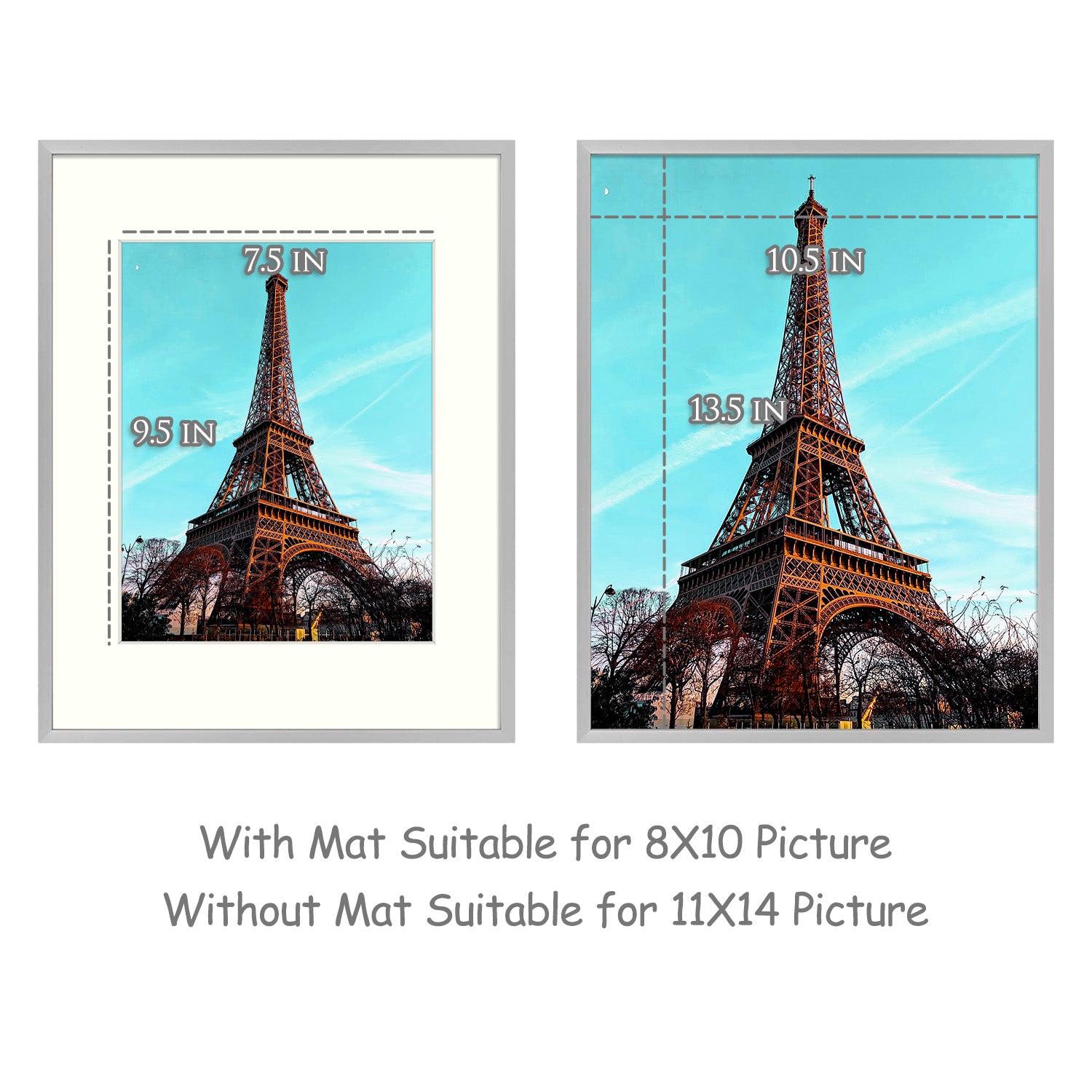 Frametory, 11x14 Silver Aluminum Frame with Ivory Mat for 8x10 Pictures/Photos - Wall Mounting, Real Glass, Swivel Back Tabs, Sawtooth Hanger, Portrait/Landscape Display Metal Collection (6 Pack)