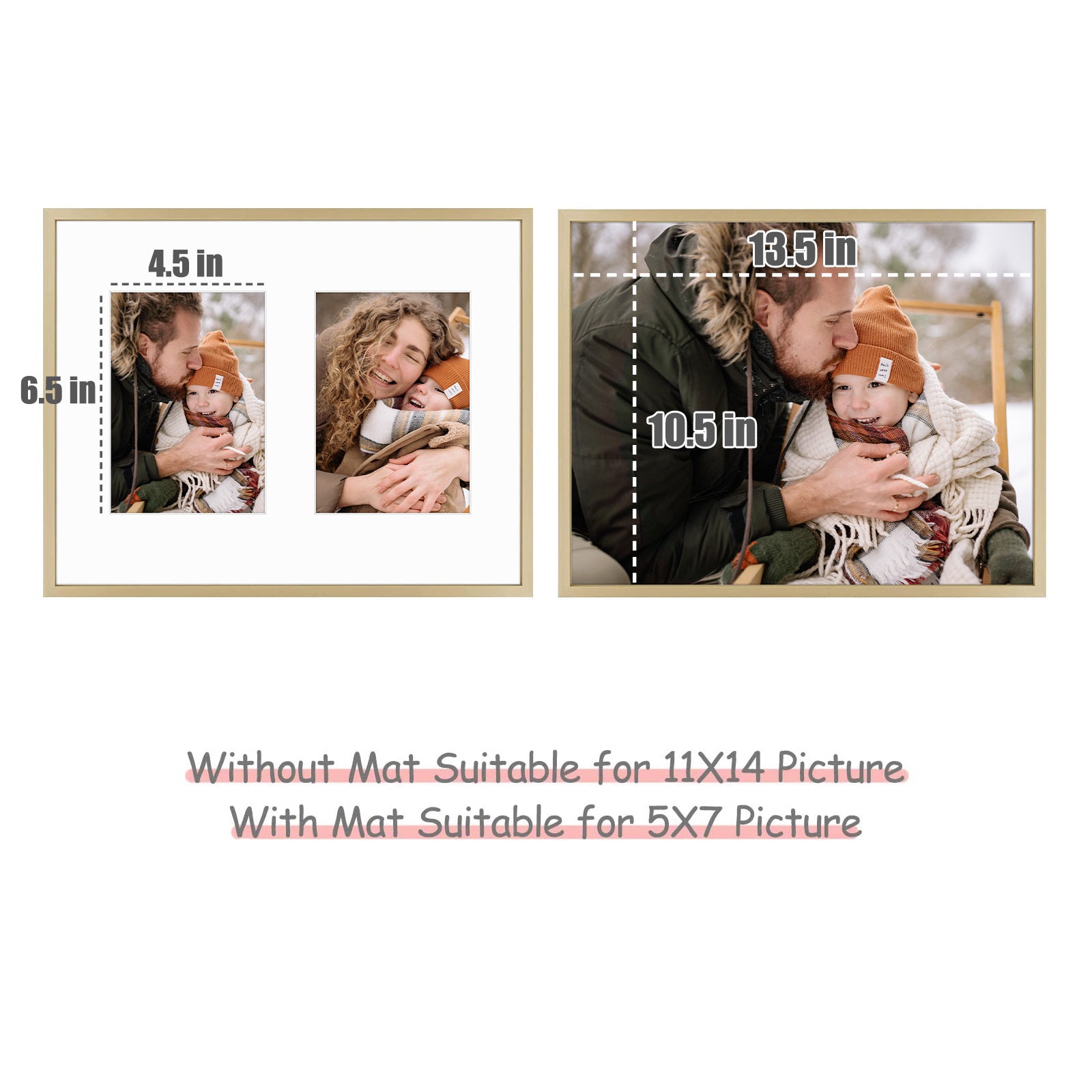 11x14 Gold Metal Picture Frame for Two 5x7 Photos and White Mat (6 Pack)