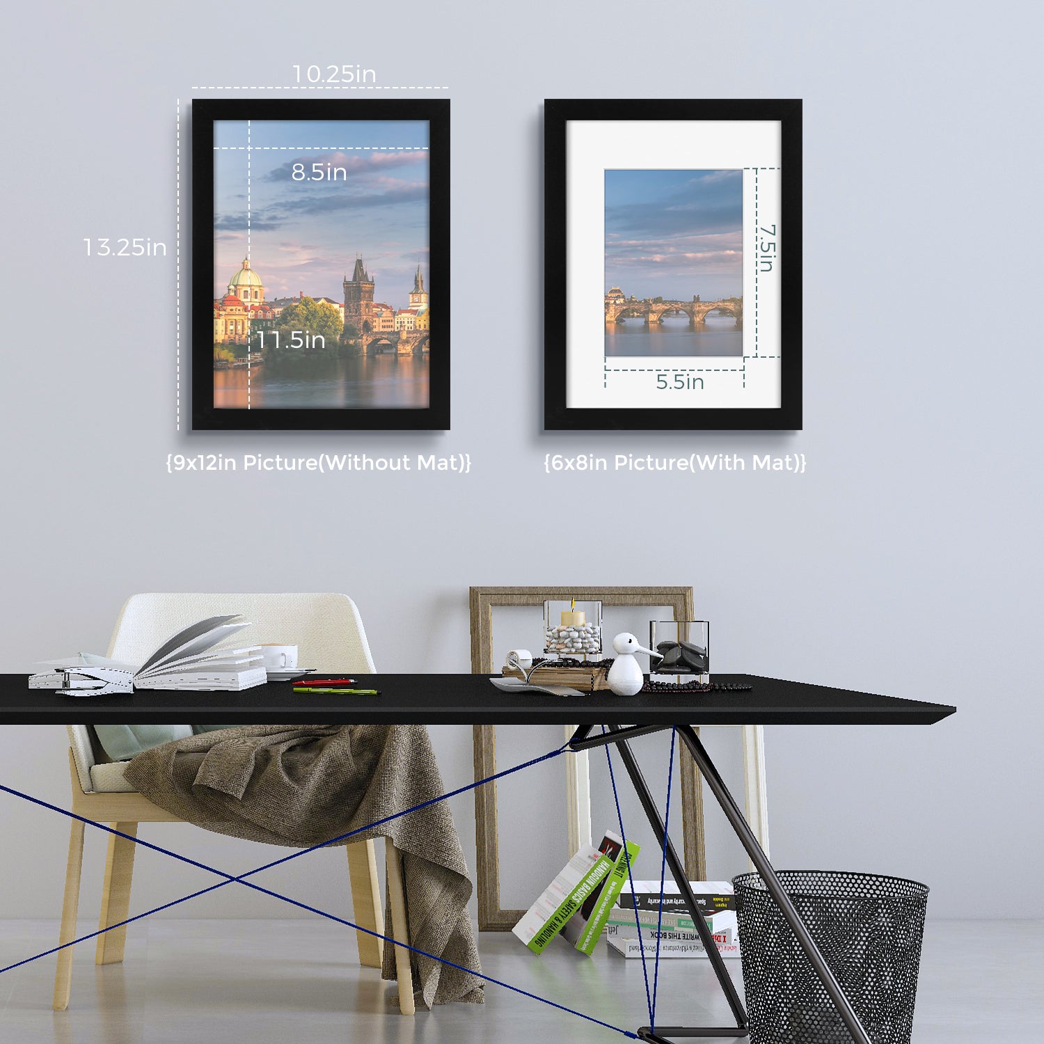 - Classic Color Design: 9x12 black picture frame with a sleek finish and matted display, perfectly complementing any decor style for a polished wall presentation.
