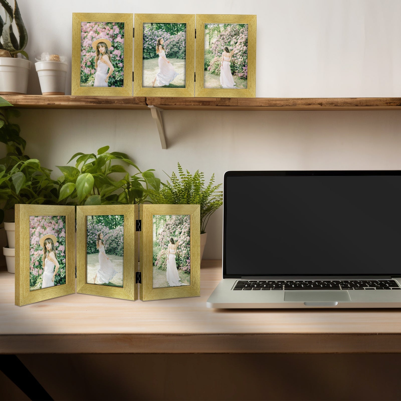 - Holds Three 4"x6" Photos: Perfect for vertical photo display on your desk or tabletop.