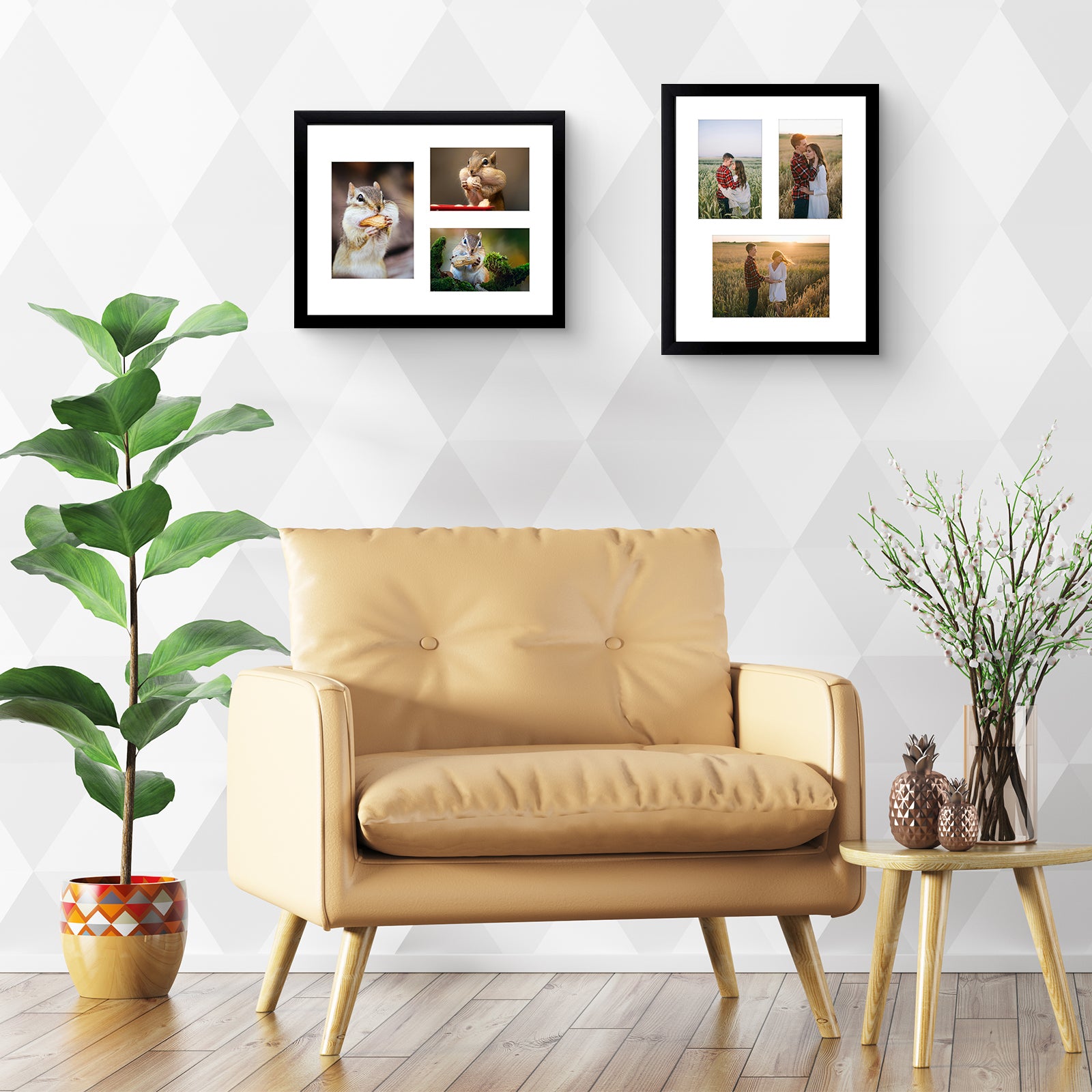 11X14 Collage Picture Frames, Wood Frames with White Mat For One 5X7 And Two 4X6 Photos, Black (10 Pcs per Box)