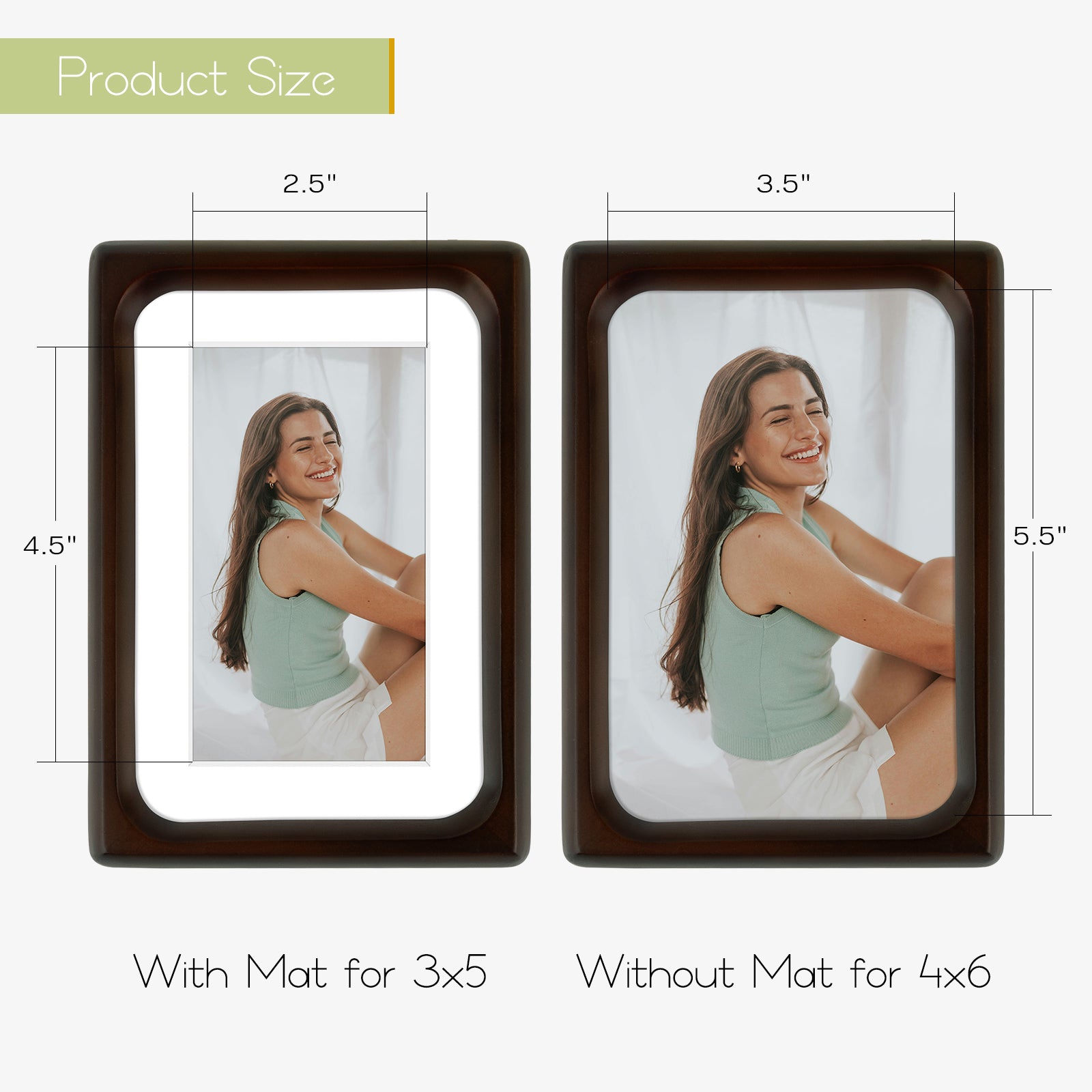 - Flexible Display Options: Displays 3x5 inch photos with mat (mat opening: 2.5x4.5 inches) or 4x6 inch photos without mat. Equipped with 2 wall-mount hooks and kickstands for both vertical and horizontal tabletop display.