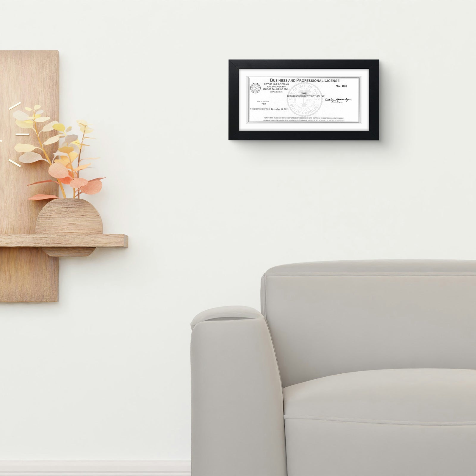 - New Frame with White Mat: Ideal for certificates, diplomas, or photos. Outside frame size: 6x11 inches.