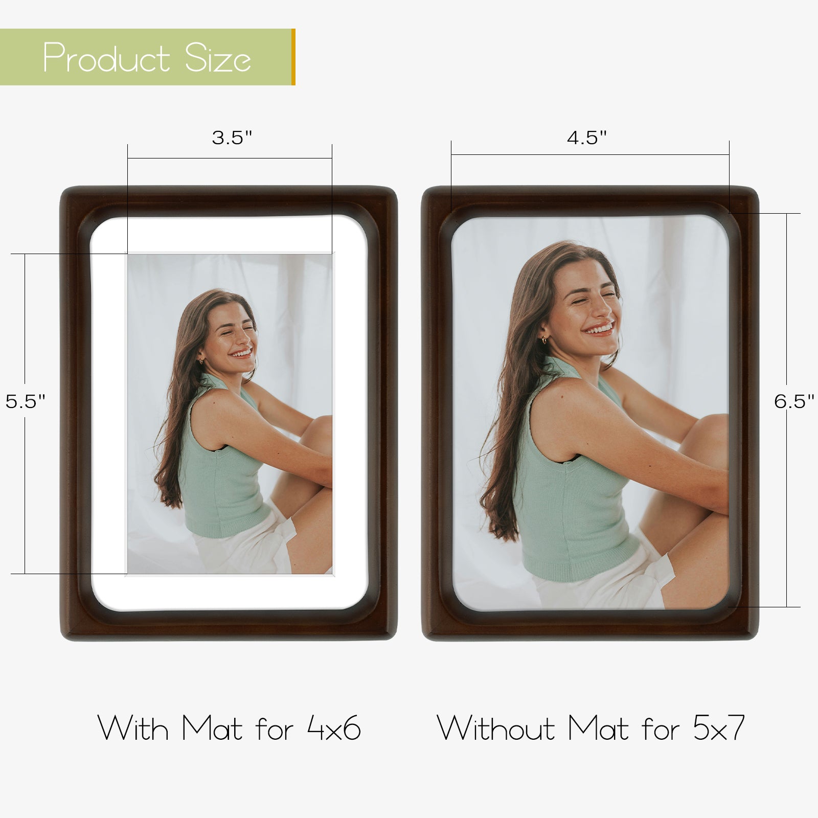- Display Size: Fits 4x6 inch photos with mat (mat opening: 3.5x5.5 inches) or 5x7 inch photos without mat. Includes 2 hooks for wall mounting and kickstands for both vertical and horizontal tabletop display.