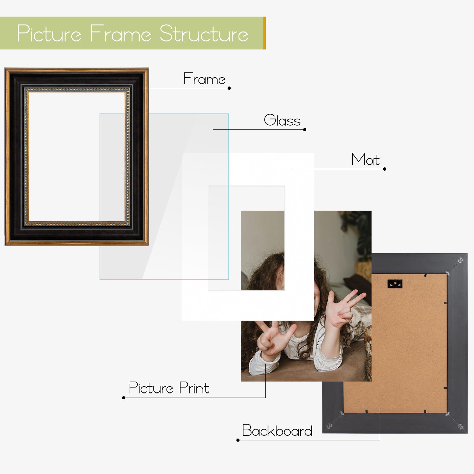 - Complete Set: Includes one antique gold frame, a white bevel-cut mat, and a durable tempered glass cover to keep your photos protected.