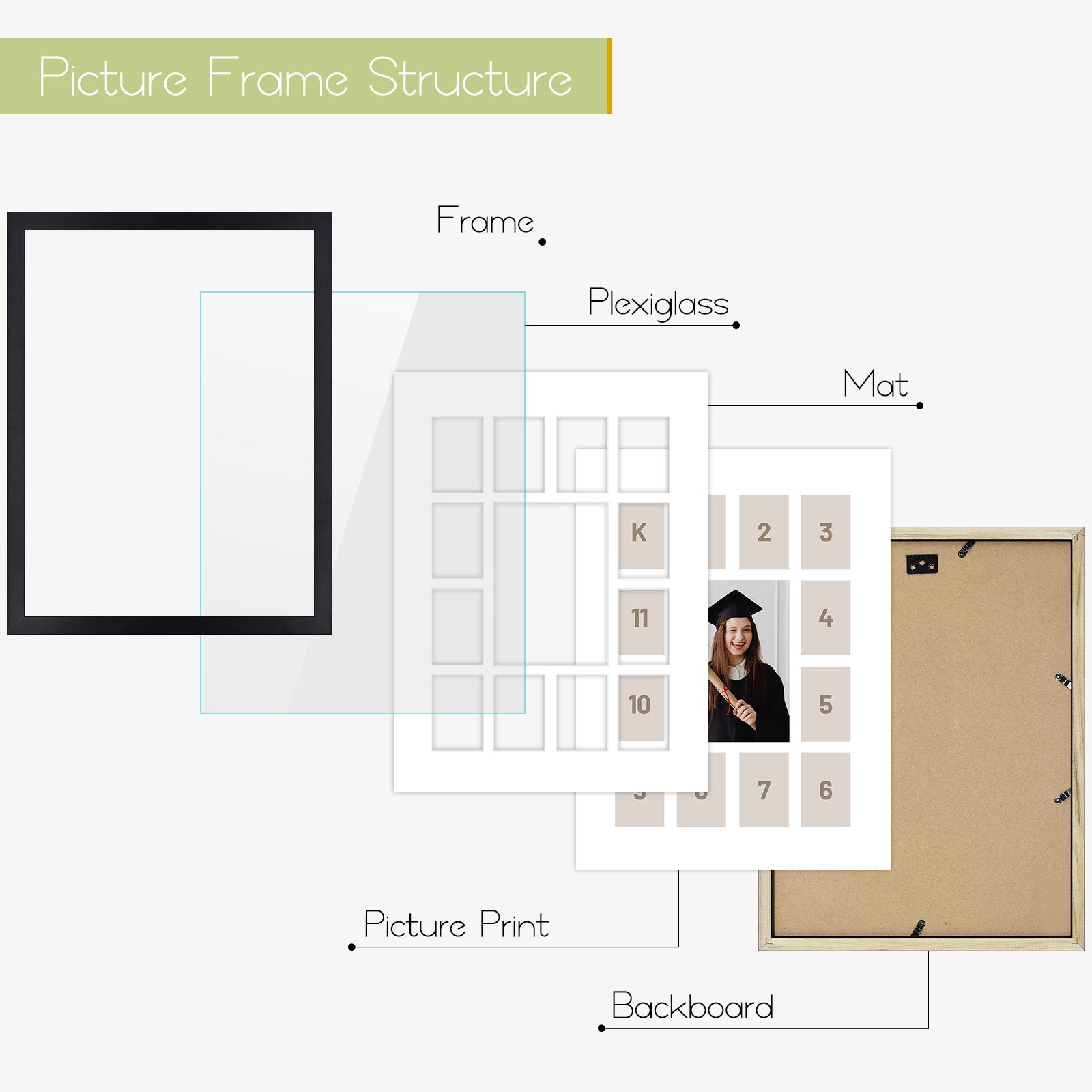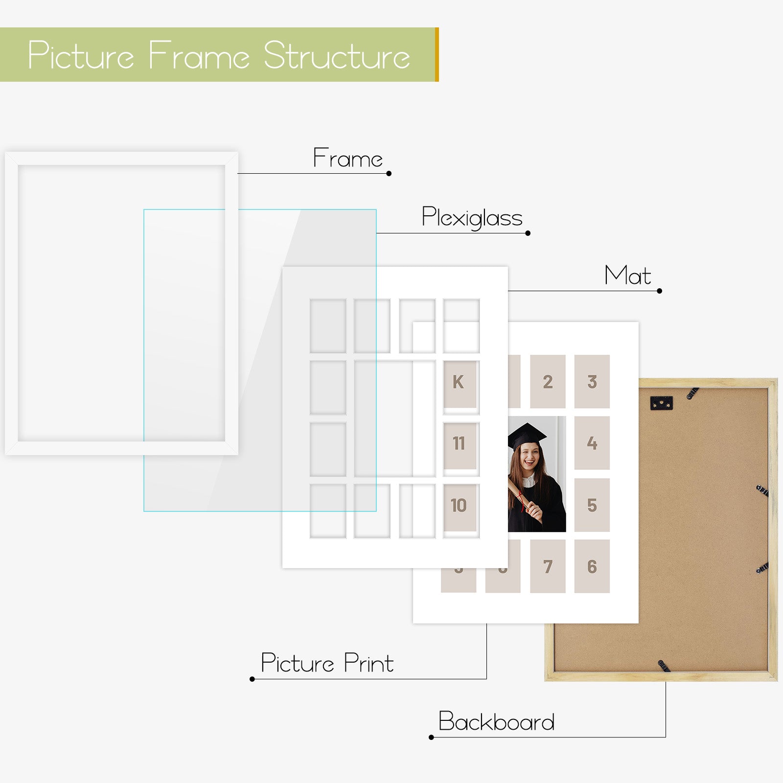 12x16 Collage Picture Frames for One 5x7 and Twelve 2.5x3.75 Picture(8 Pack)