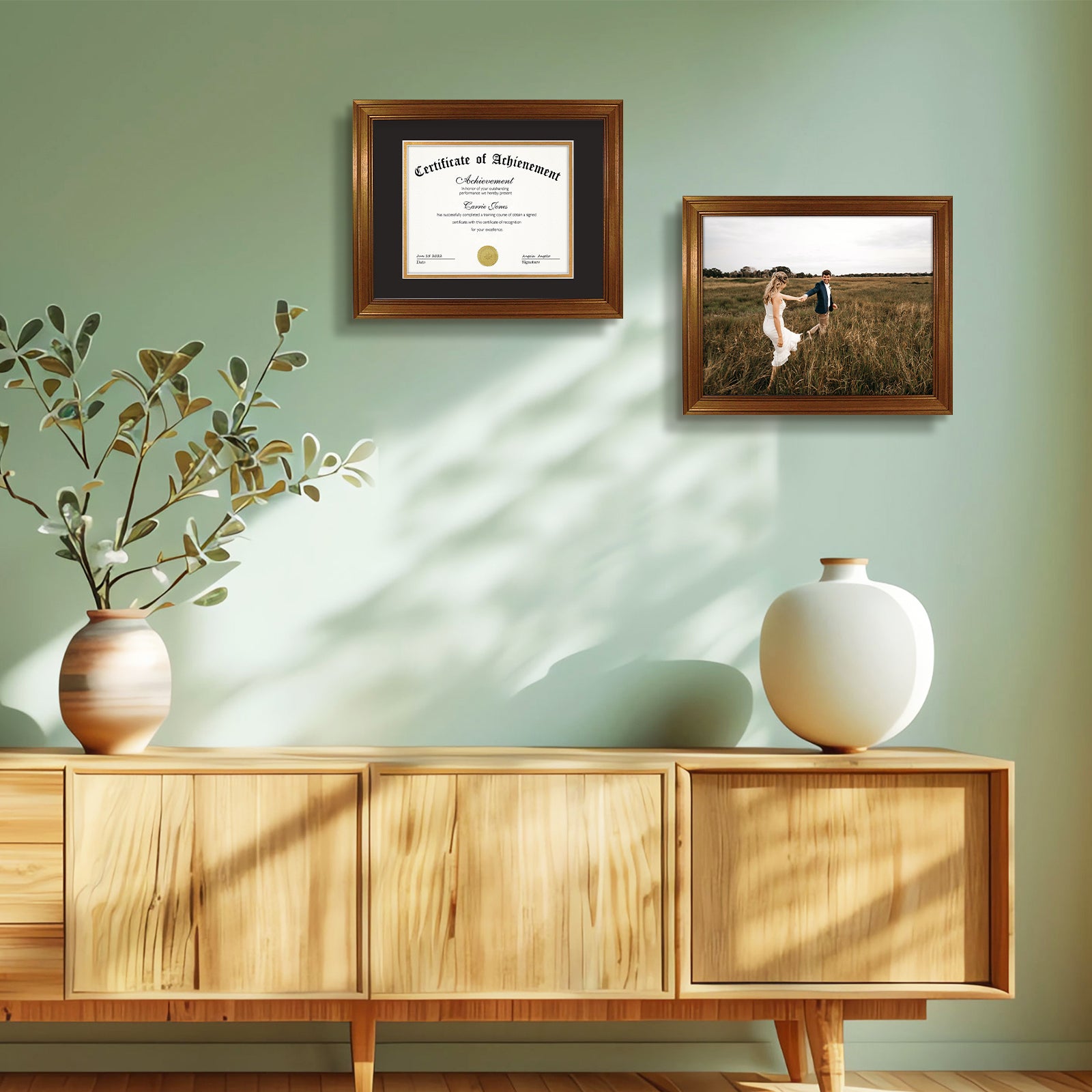 11x14 Diploma Frame with Black over Gold Double Mat for 8x10 Certificate Dark Gold Color (10 Pack)