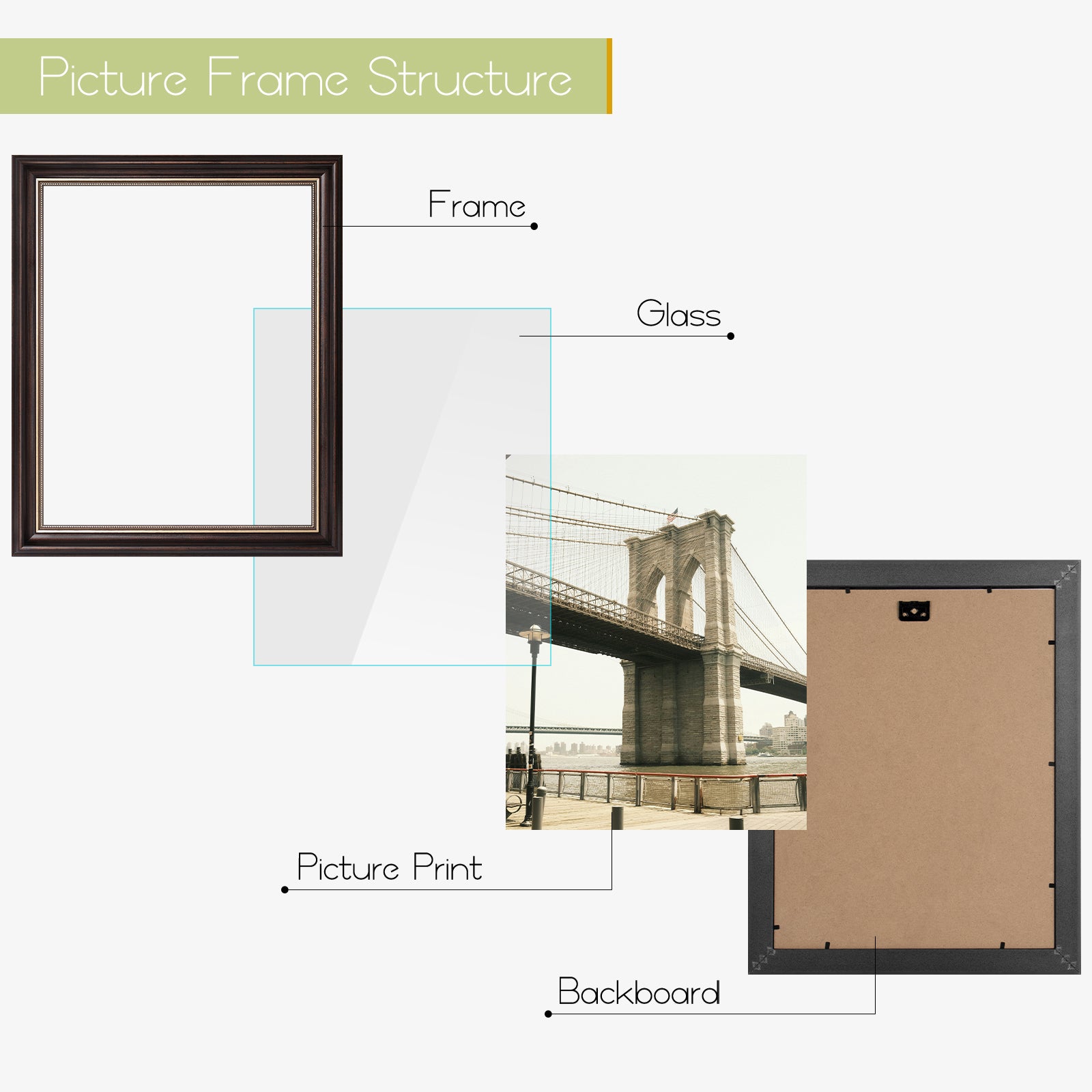 - Complete Set: Includes one dark brown/ornate gold frame, one white mat, and a tempered glass cover to protect your cherished photos.