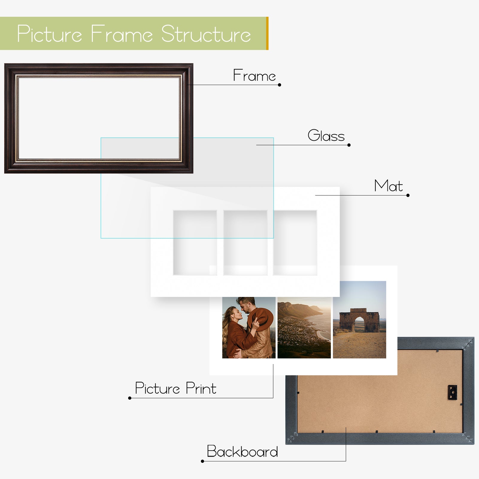 - Durable Build: Features a real glass front to protect your photos, a bevel-cut white mat, and a sturdy backboard with sawtooth hangers for easy vertical or horizontal mounting.