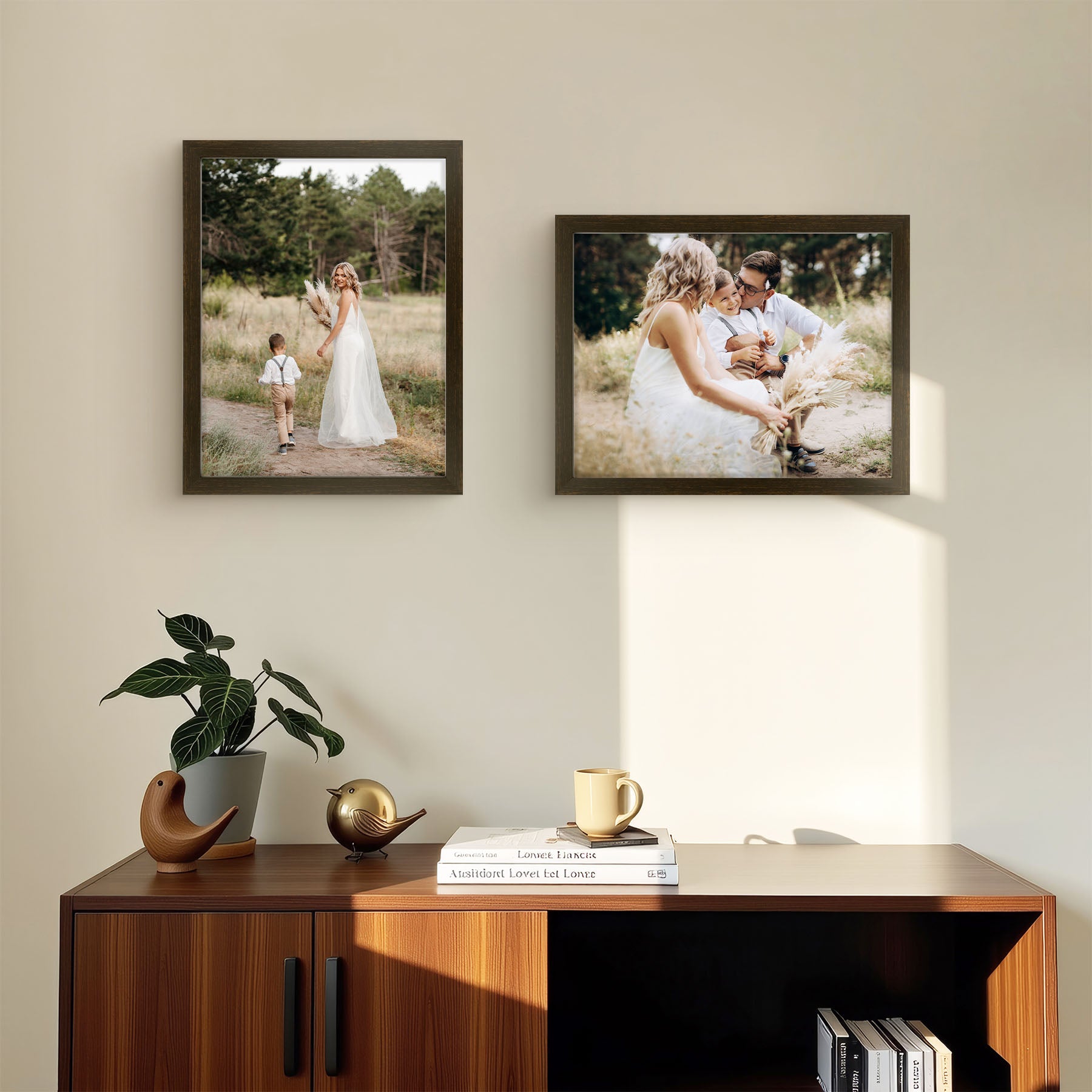 - Premium Quality Materials: Made with a dark brown solid wood frame and tempered glass, this 5-photo collage frame adds elegance and durability to any room decor.