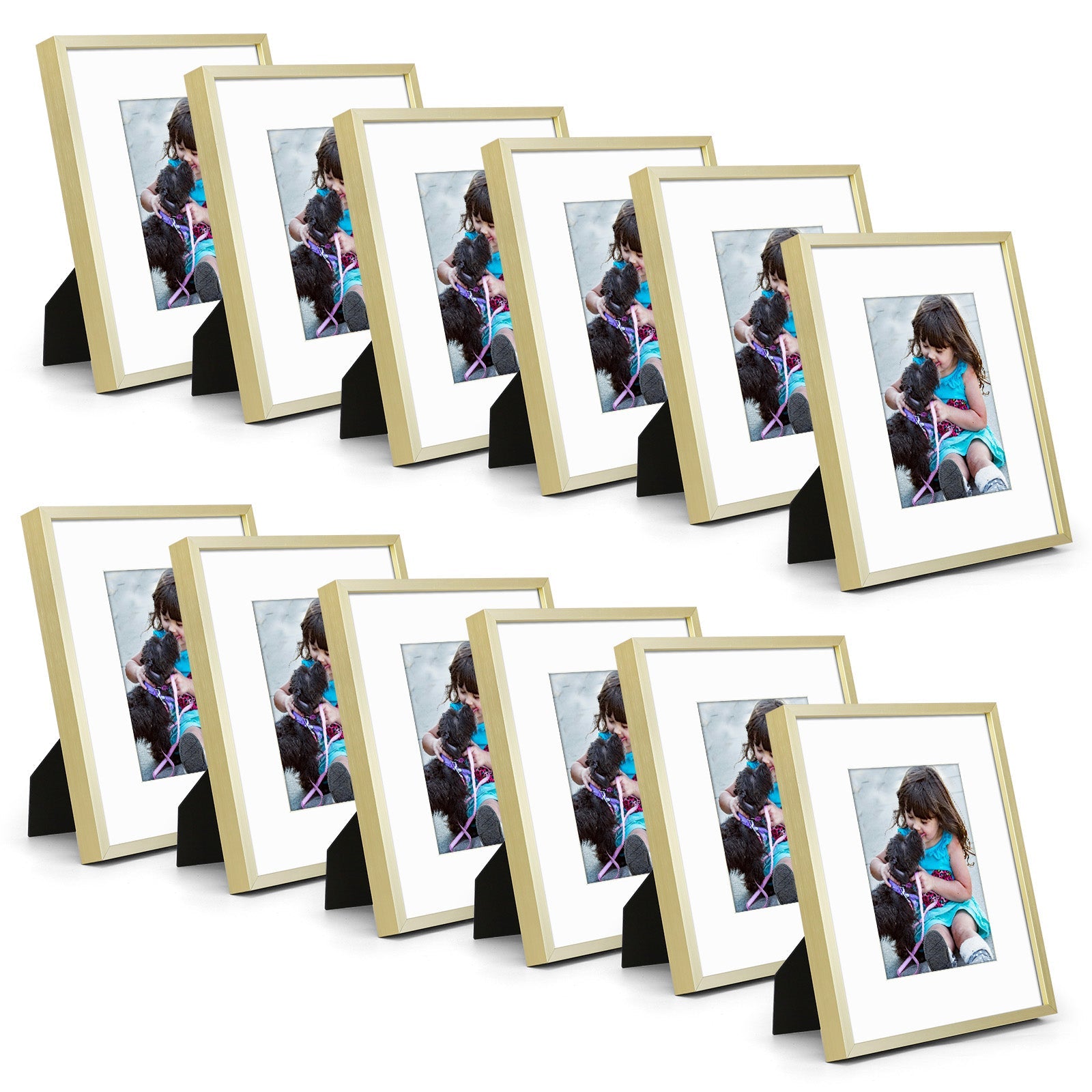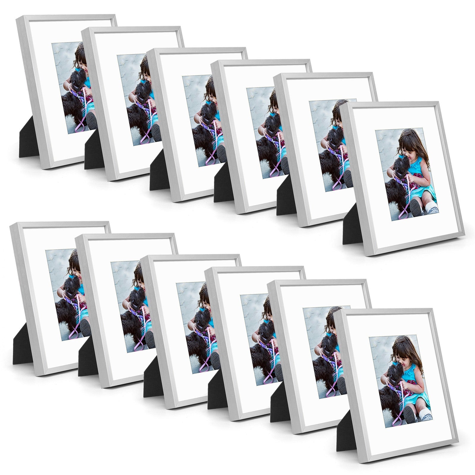 - Complete Frame Set: Includes twelve 8x10" silver aluminum frames, each with a removable mat. Easy to use-just place your photo inside and hang instantly.