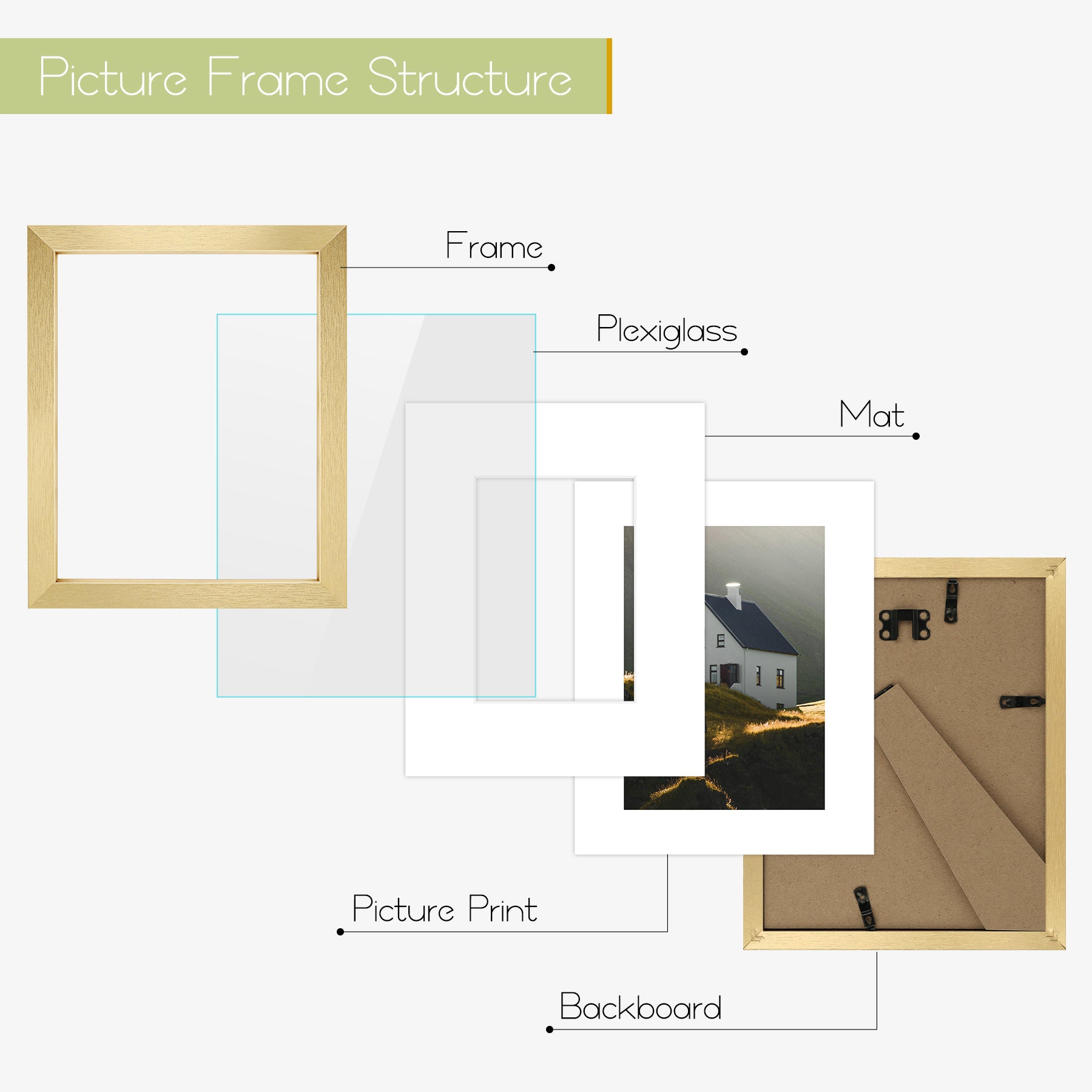 - Flexible Display: Includes hanging hardware and swivel tabs for vertical or horizontal wall mounting. 6x8/8x10 frames also have a built-in kickstand for tabletop use.