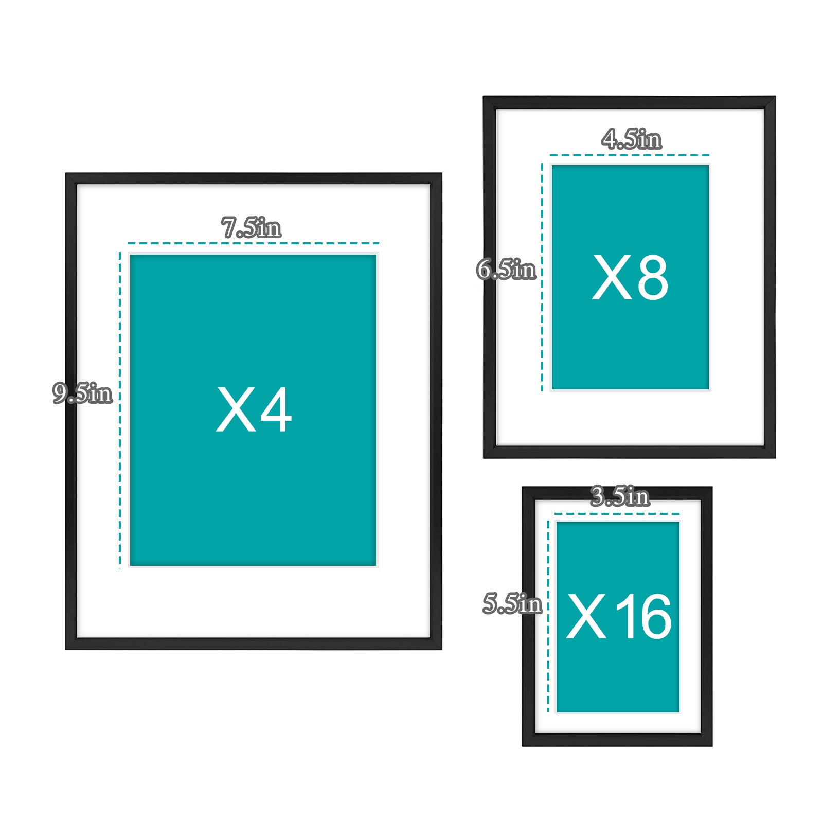 Aluminum Picture Frames Four 11x14, Eight 8x10, and Sixteen 5x7 inch Photos for Home Decoration (28 Pack)
